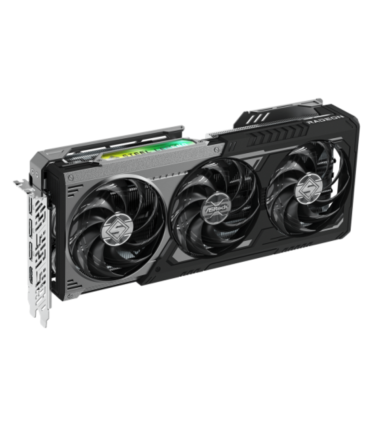 Asrock Radeon RX 9070 XT Steel Legend Dark. Familia de procesadores de gráficos: AMD, Procesador gráfico: Radeon RX 9070 XT, Frecuencia del procesador: 2400 MHz. Capacidad memoria de adaptador gráfico: 16 GB, Tipo de memoria de adaptador gráfico: GDDR6, Ancho de datos: 256 bit. Máxima resolución: 7680 x 4320 Pixeles. Versión DirectX: 12 Ultimate, Versión OpenGL: 4.6. Tipo de interfaz: PCI Express x16 5.0. Tipo de enfriamiento: Activo, Número de ventiladores: 3 Ventilador(es), Iluminación de color: Multi