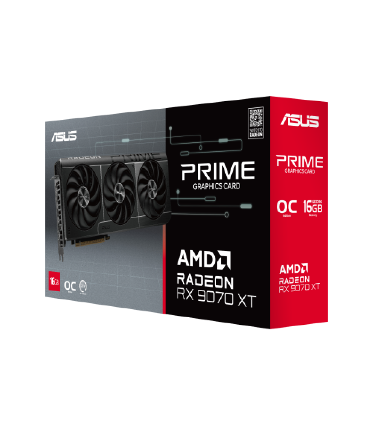 ASUS Prime -RX9070XT-O16G. Familia de procesadores de gráficos: AMD, Procesador gráfico: Radeon RX 9070 XT. Capacidad memoria de adaptador gráfico: 16 GB, Tipo de memoria de adaptador gráfico: GDDR6, Ancho de datos: 256 bit. Máxima resolución: 7680 x 4320 Pixeles. Versión DirectX: 12 Ultimate, Versión OpenGL: 4.6. Tipo de interfaz: PCI Express 5.0. Tipo de enfriamiento: Activo, Número de ventiladores: 3 Ventilador(es)