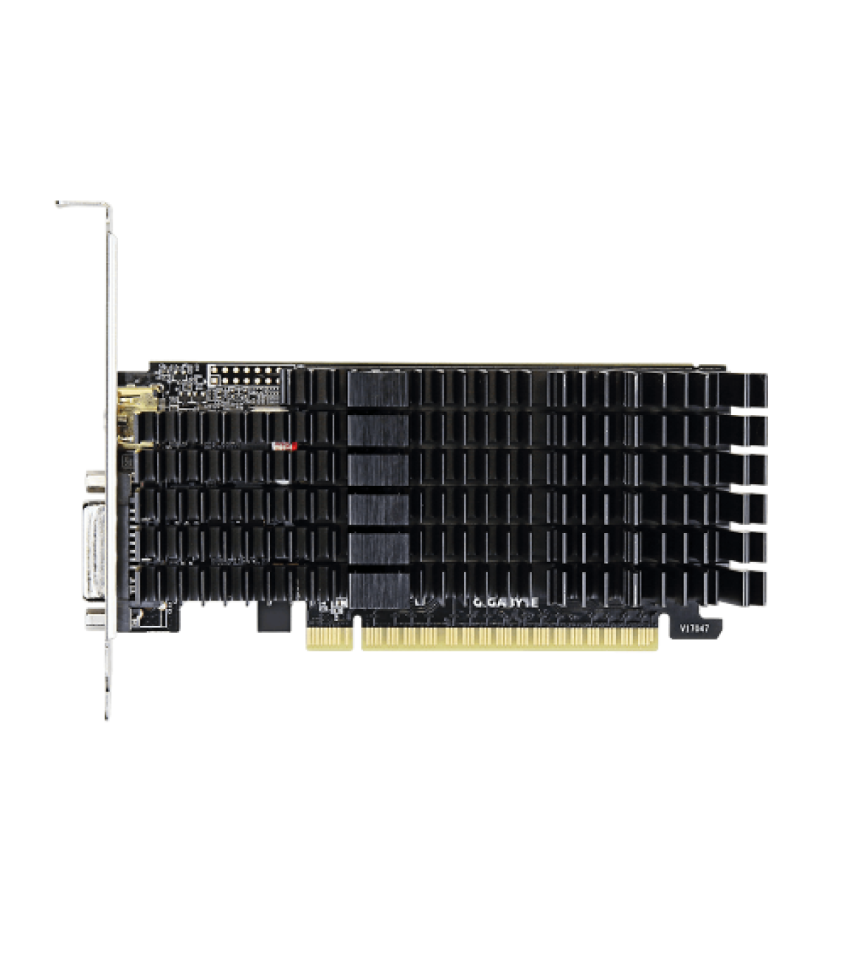 Gigabyte GeForce GT 710 2GB. Familia de procesadores de gráficos: NVIDIA, Procesador gráfico: GeForce GT 710, Frecuencia del procesador: 954 MHz. Capacidad memoria de adaptador gráfico: 2 GB, Tipo de memoria de adaptador gráfico: GDDR5, Ancho de datos: 64 bit, Velocidad de memoria del reloj: 5010 MHz. Máxima resolución: 4096 x 2160 Pixeles. Versión DirectX: 12.0, Versión OpenGL: 4.5, Dual Link DVI. Tipo de interfaz: PCI Express 2.0. Tipo de enfriamiento: Pasivo