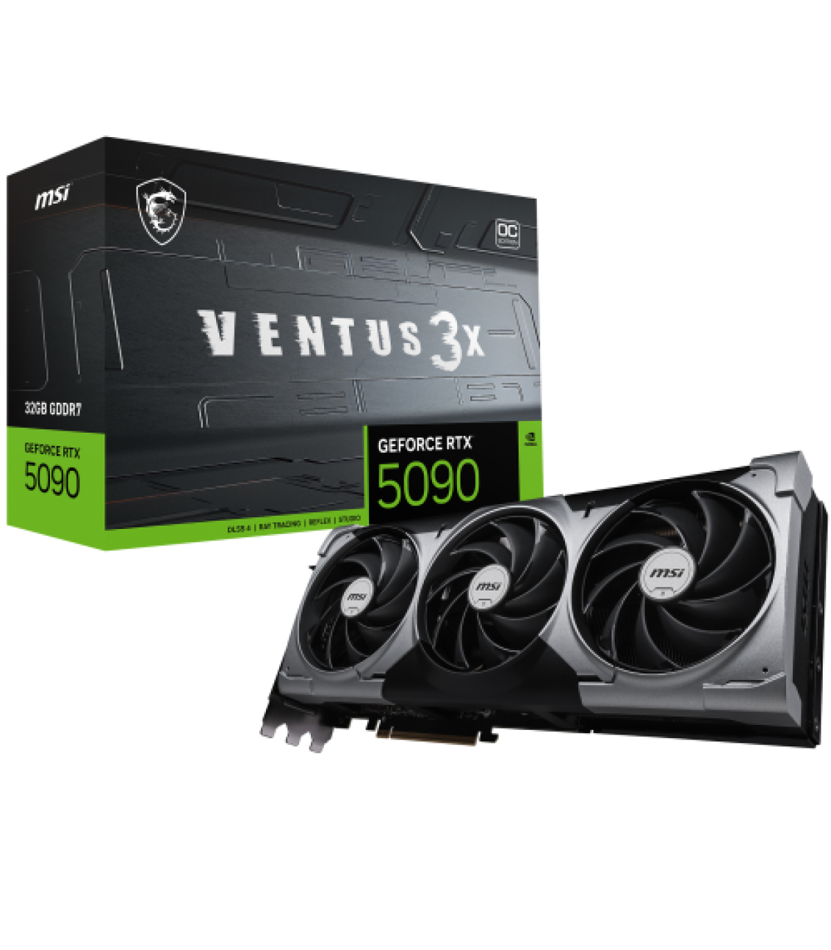 MSI VENTUS GEFORCE RTX 5090 32G 3X OC. Familia de procesadores de gráficos: NVIDIA, Procesador gráfico: GeForce RTX 5090. Capacidad memoria de adaptador gráfico: 32 GB, Tipo de memoria de adaptador gráfico: GDDR7, Ancho de datos: 512 bit. Máxima resolución: 7680 x 4320 Pixeles. Versión DirectX: 12 Ultimate, Versión OpenGL: 4.6. Tipo de interfaz: PCI Express x16 5.0. Tipo de enfriamiento: Activo, Número de ventiladores: 3 Ventilador(es)