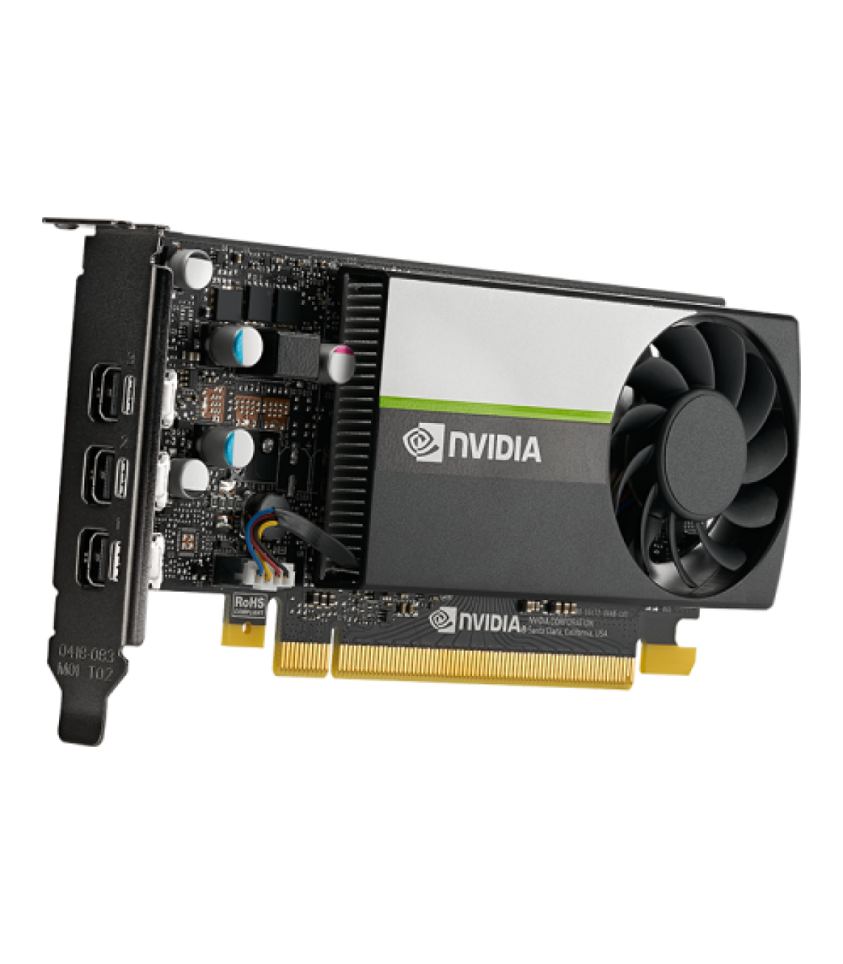 PNY VCNT4004GB. Familia de procesadores de gráficos: NVIDIA, Procesador gráfico: T400. Capacidad memoria de adaptador gráfico: 4 GB, Tipo de memoria de adaptador gráfico: GDDR6, Ancho de datos: 64 bit. Máxima resolución: 7680 x 4320 Pixeles. Tipo de interfaz: PCI Express x16 3.0. Tipo de enfriamiento: Activo, Número de ventiladores: 1 Ventilador(es)