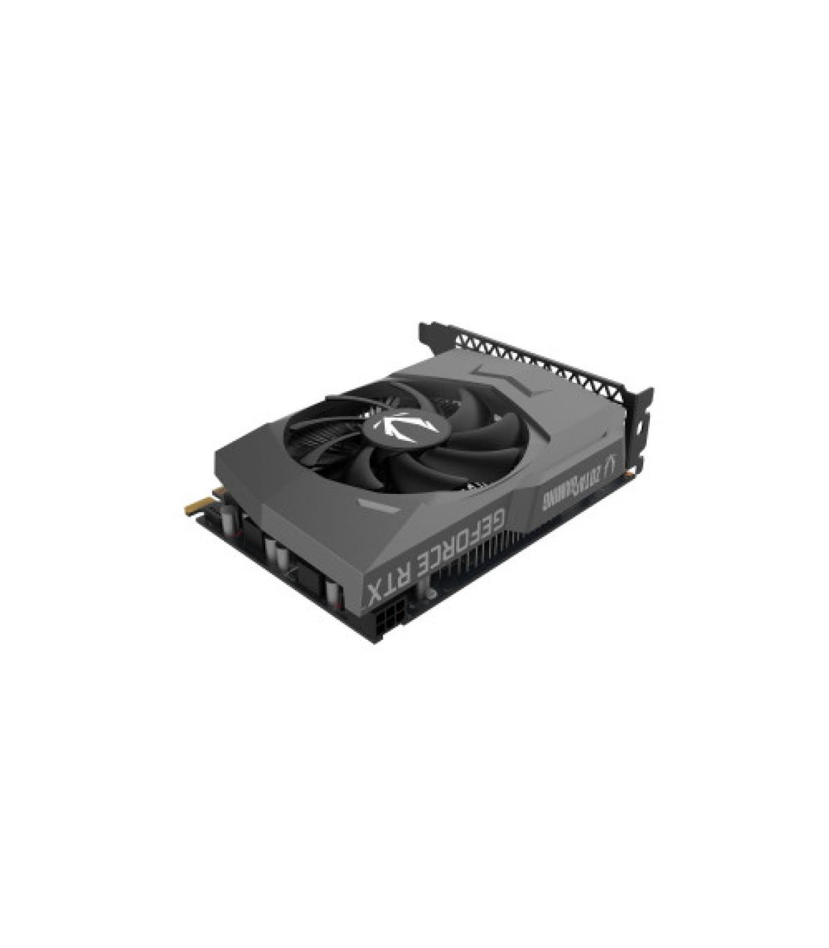 Zotac GAMING GeForce RTX 3050 Eco Solo. Familia de procesadores de gráficos: NVIDIA, Procesador gráfico: GeForce RTX 3050. Capacidad memoria de adaptador gráfico: 8 GB, Tipo de memoria de adaptador gráfico: GDDR6, Ancho de datos: 128 bit. Máxima resolución: 7680 x 4320 Pixeles. Versión DirectX: 12 Ultimate, Versión OpenGL: 4.6. Tipo de interfaz: PCI Express x8 4.0. Tipo de enfriamiento: Activo, Número de ventiladores: 1 Ventilador(es)