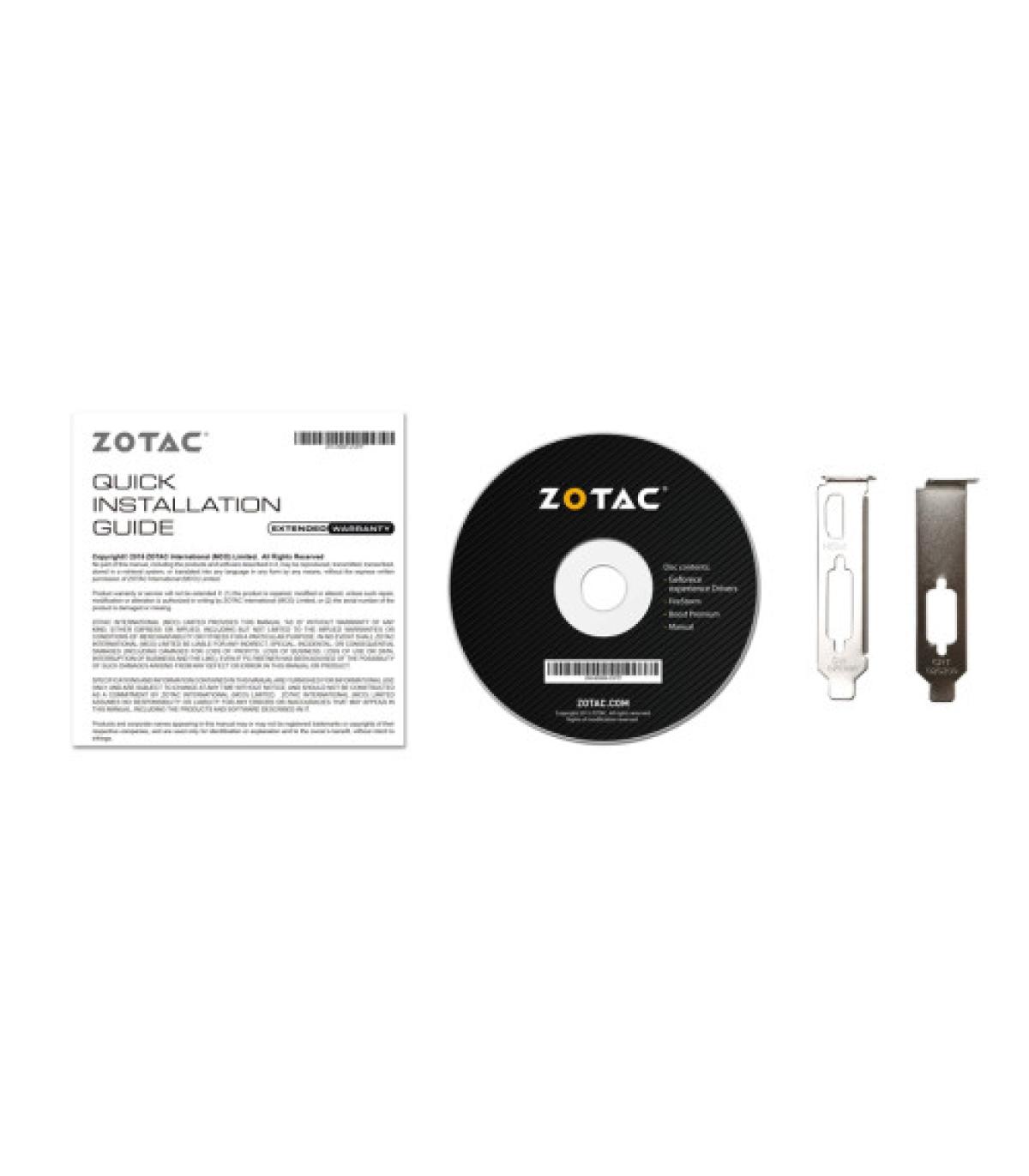 Zotac GeForce GT 710. Familia de procesadores de gráficos: NVIDIA, Procesador gráfico: GeForce GT 710, Frecuencia del procesador: 954 MHz. Capacidad memoria de adaptador gráfico: 2 GB, Tipo de memoria de adaptador gráfico: GDDR3, Ancho de datos: 64 bit, Velocidad de memoria del reloj: 1600 MHz. Máxima resolución: 3840 x 2160 Pixeles. Versión DirectX: 12.0, Versión OpenGL: 4.5, Dual Link DVI. Tipo de interfaz: PCI Express 2.0. Tipo de enfriamiento: Activo, Número de ventiladores: 1 Ventilador(es)
