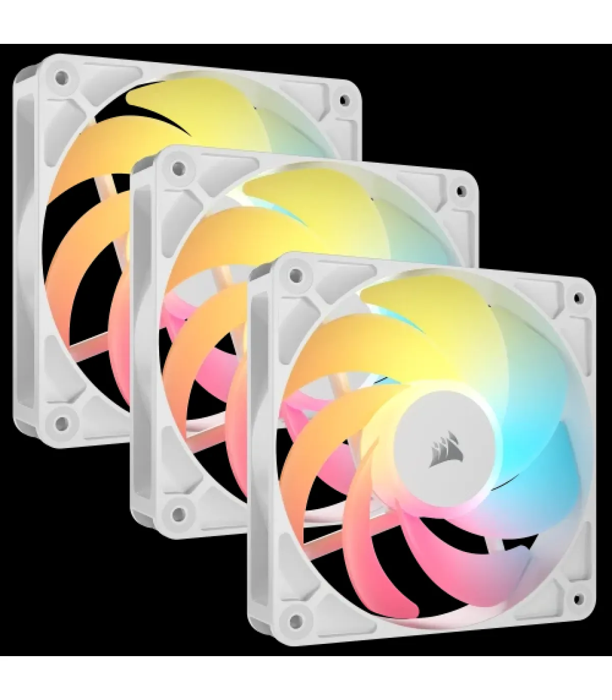 Corsair RS120-R ARGB. Tipo: Ventilador, Diámetro de ventilador: 12 cm, Velocidad de rotación (mín.): 420 RPM, Velocidad de rotación (máx.): 2100 RPM, Presión de aire mínima: 0,14 mmH2O, Presión máxima de aire: 2,81 mmH2O. Color del producto: Blanco
