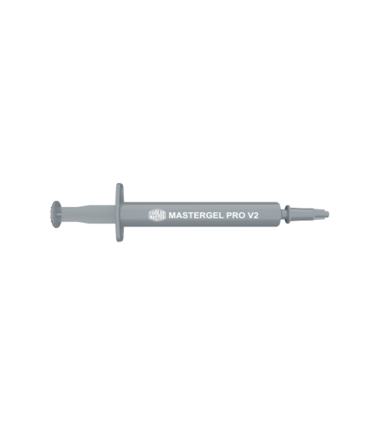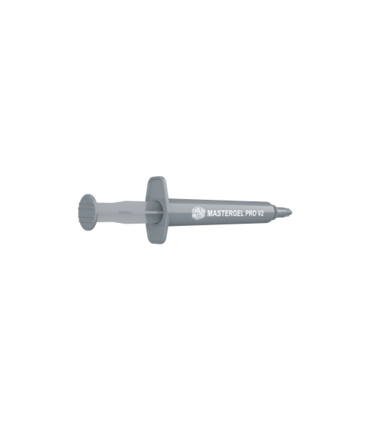 Cooler Master MasterGel Pro V2. Conductividad térmica: 9 W/m·K, Densidad: 2,6 g/cm³, Color del producto: Gris. Volumen: 1,5 ml, Peso: 4 g. Ancho del paquete: 82 mm, Profundidad del paquete: 200 mm, Altura del paquete: 10 mm