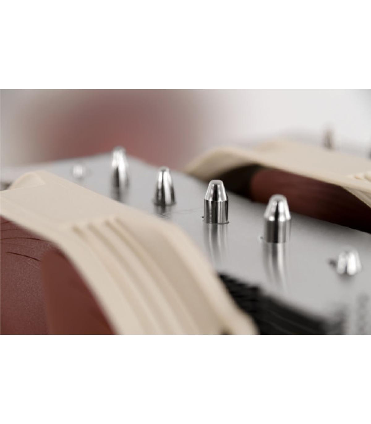 Situado en la parte inferior del conjunto de aletas, los grandes ventiladores NF-A15 no sólo contribuyen a incrementar las grandiosas capacidades de refrigeración de la CPU del NH-D15, sino que también brindan un considerable flujo de aire a los componentes que rodean a la placa base y disipadores, asegurando así un excelente rendimiento de refrigeración de los componentes.