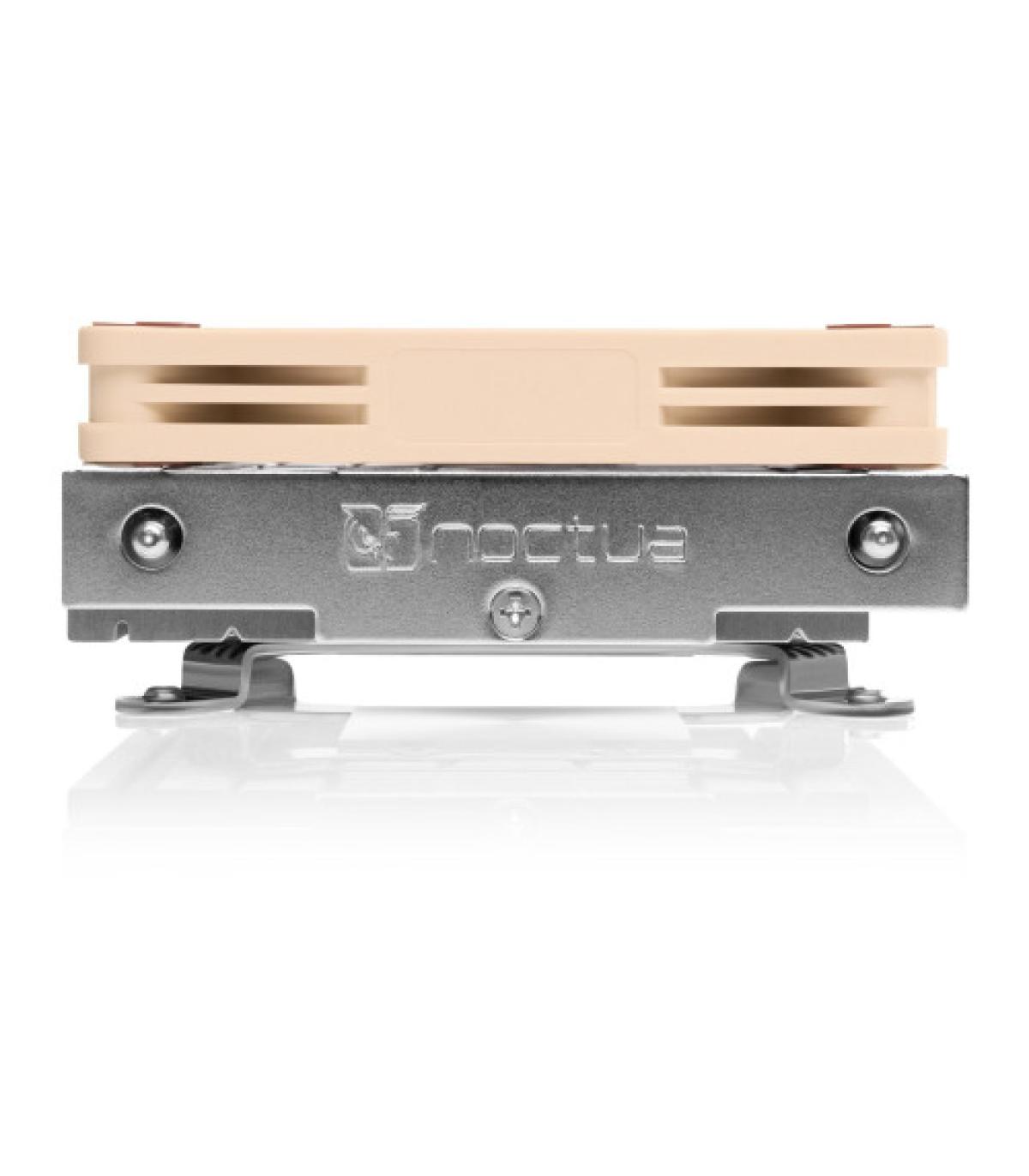 Noctua NH-L9i. Tipo: Enfriador, Diámetro de ventilador: 9,2 cm, Velocidad de rotación (mín.): 300 RPM, Velocidad de rotación (máx.): 2500 RPM, Nivel de ruido (alta velocidad): 23,6 dB, flujo de aire: 57,5 m³/h, Presión máxima de aire: 2,11 mmH2O. Voltaje: 12 V. Ancho: 95 mm, Profundidad: 95 mm, Altura: 23 mm. Color del producto: Beige, Marrón, Plata