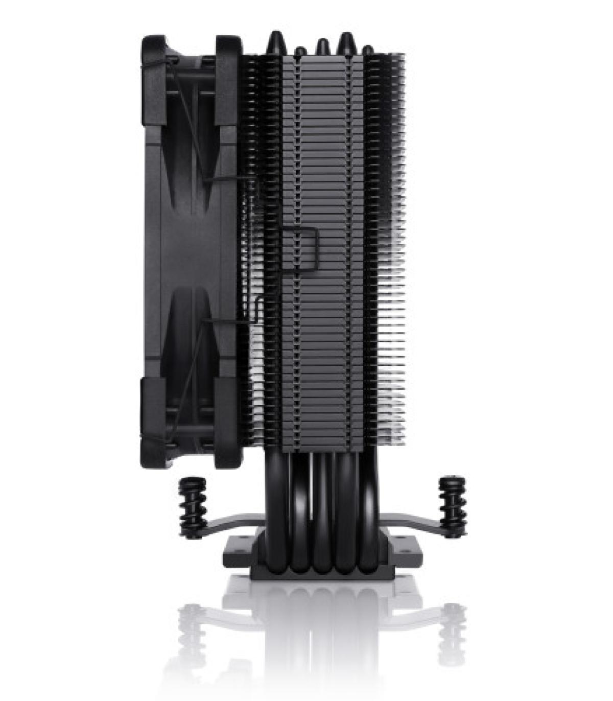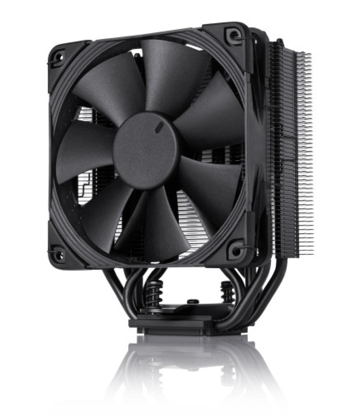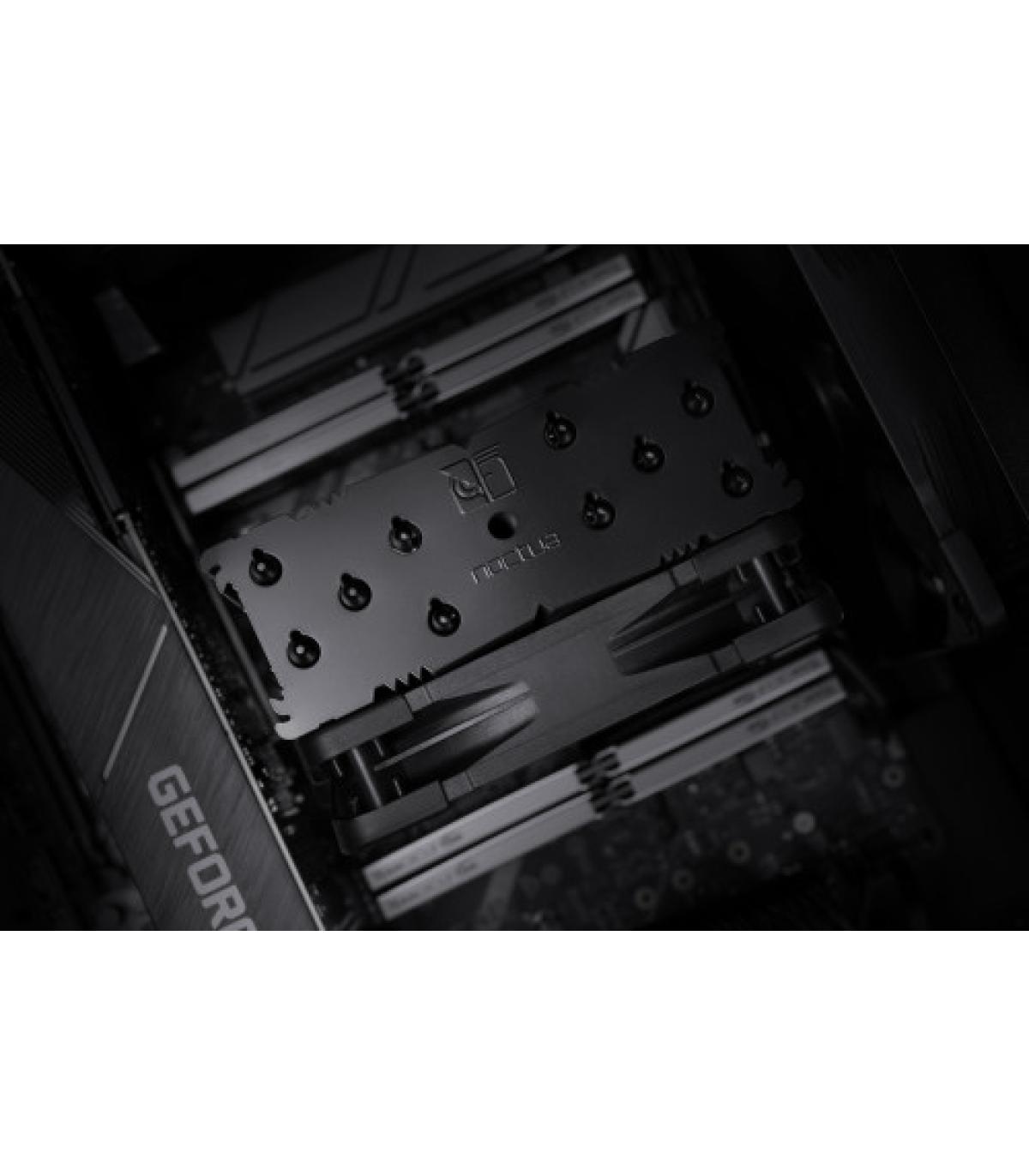 Noctua NH-U12S chromax.black. Tipo: Enfriador, Diámetro de ventilador: 12 cm, Velocidad de rotación (mín.): 300 RPM, Velocidad de rotación (máx.): 1500 RPM, Nivel de ruido (alta velocidad): 22,4 dB, flujo de aire: 93,4 m³/h, Presión máxima de aire: 2,61 mmH2O, Tipo de soporte: Self-Stabilising Oil-pressure Bearing (SSO). Ancho: 125 mm, Profundidad: 71 mm, Altura: 158 mm. Color del producto: Negro