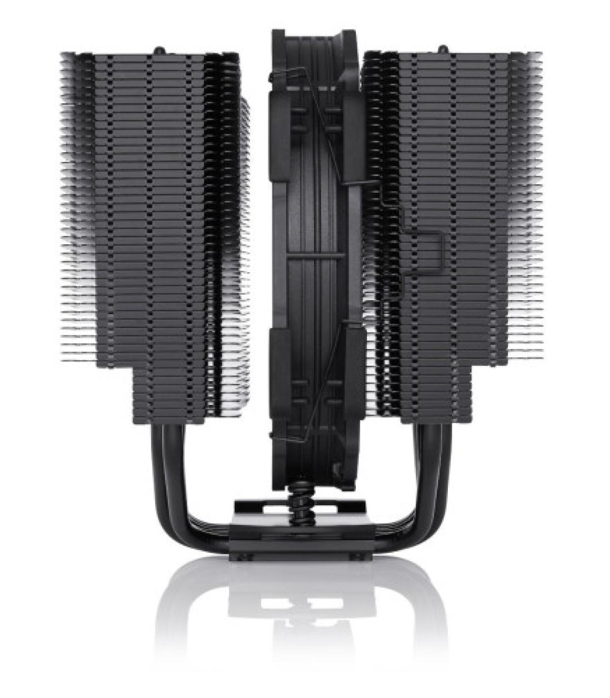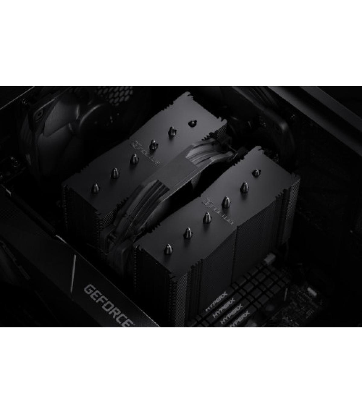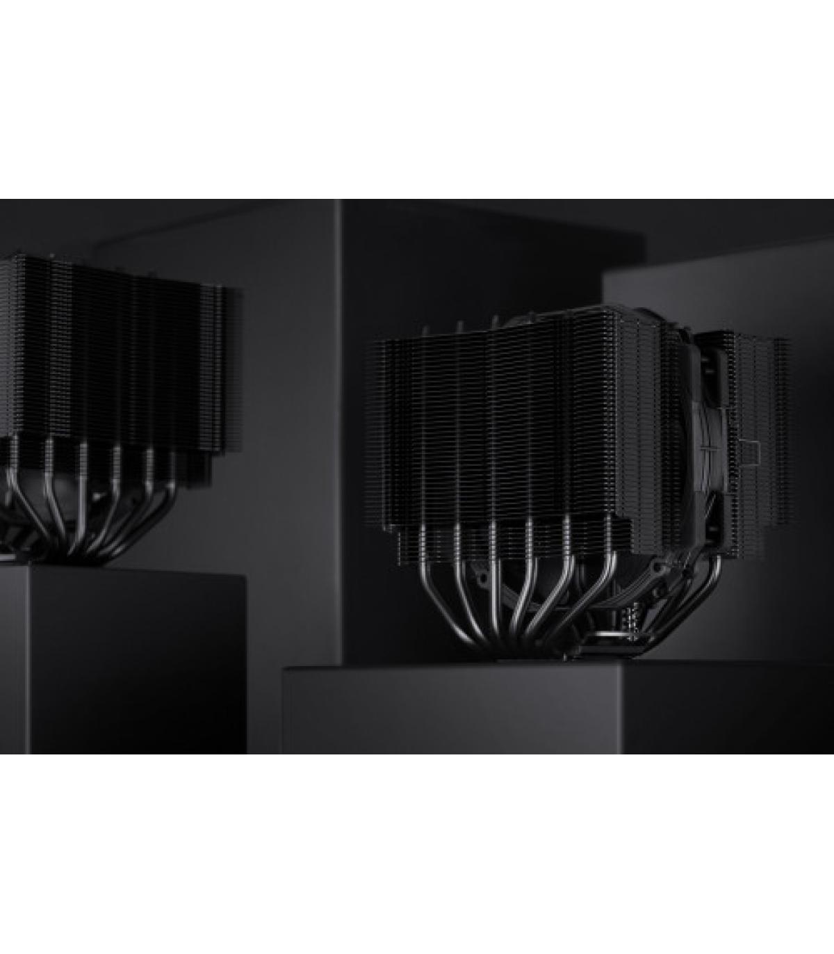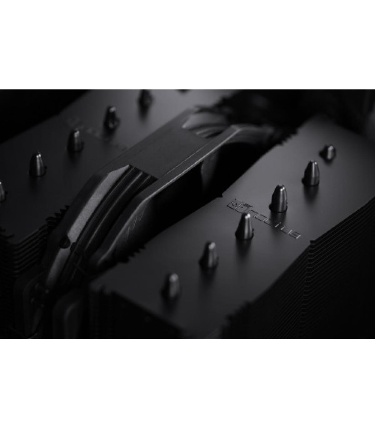 Noctua NH-D15S chromax.black. Tipo: Enfriador, Diámetro de ventilador: 14 cm, Velocidad de rotación (mín.): 300 RPM, Velocidad de rotación (máx.): 1500 RPM, Nivel de ruido (alta velocidad): 24,6 dB, flujo de aire: 140,2 m³/h, Tipo de soporte: Self-Stabilising Oil-pressure Bearing (SSO). Voltaje: 12 V. Ancho: 150 mm, Profundidad: 135 mm, Altura: 160 mm. Color del producto: Negro