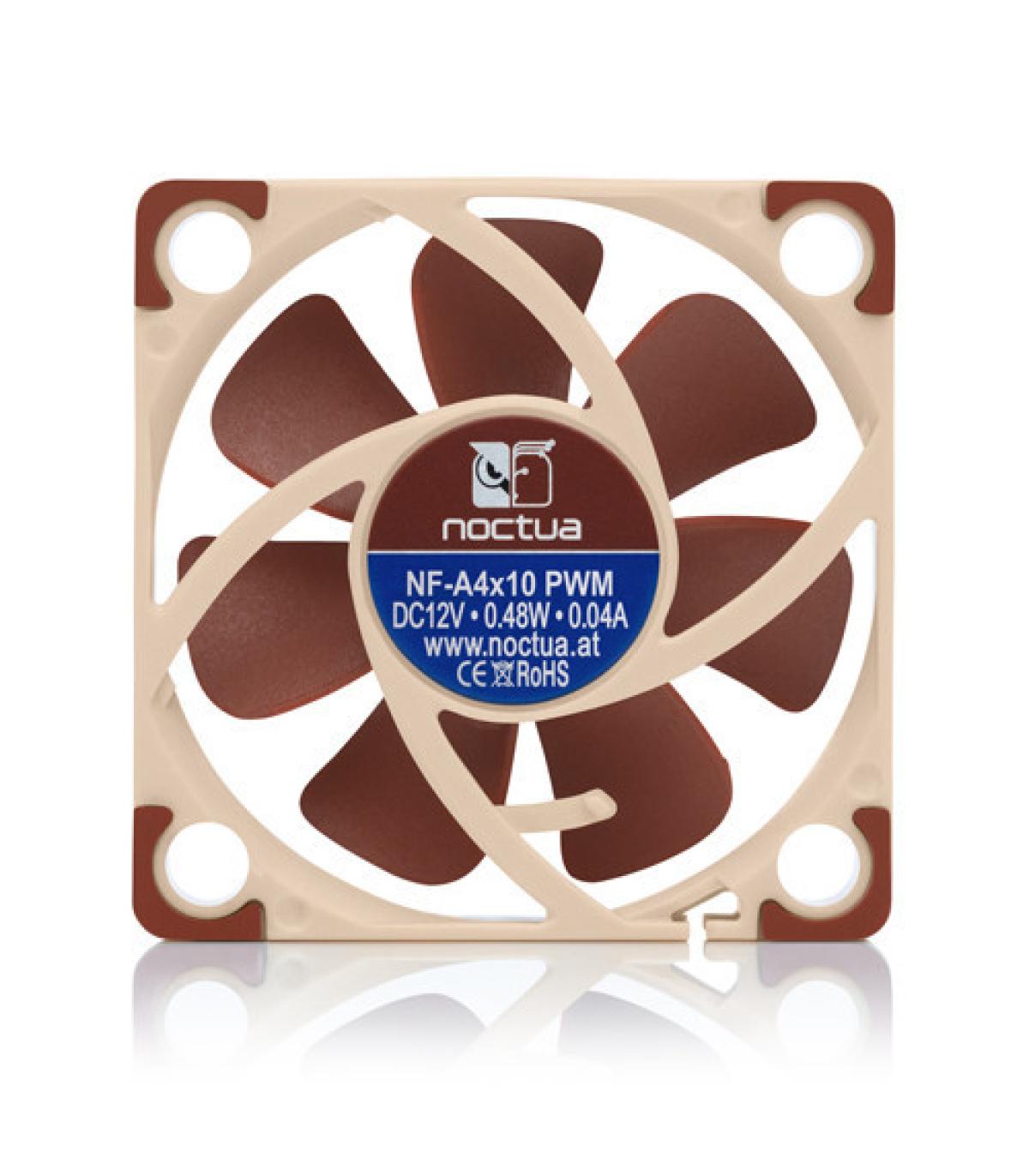 Noctua NF A4x10 PWM. Tipo: Ventilador, Diámetro de ventilador: 4 cm, Velocidad de rotación (mín.): 1000 RPM, Velocidad de rotación (máx.): 5000 RPM, Nivel de ruido (alta velocidad): 19,6 dB, flujo de aire: 8,9 m³/h, Presión máxima de aire: 1,95 mmH2O, Tipo de soporte: Self-Stabilising Oil-pressure Bearing (SSO). Voltaje: 12 V. Color del producto: Beige, Rojo