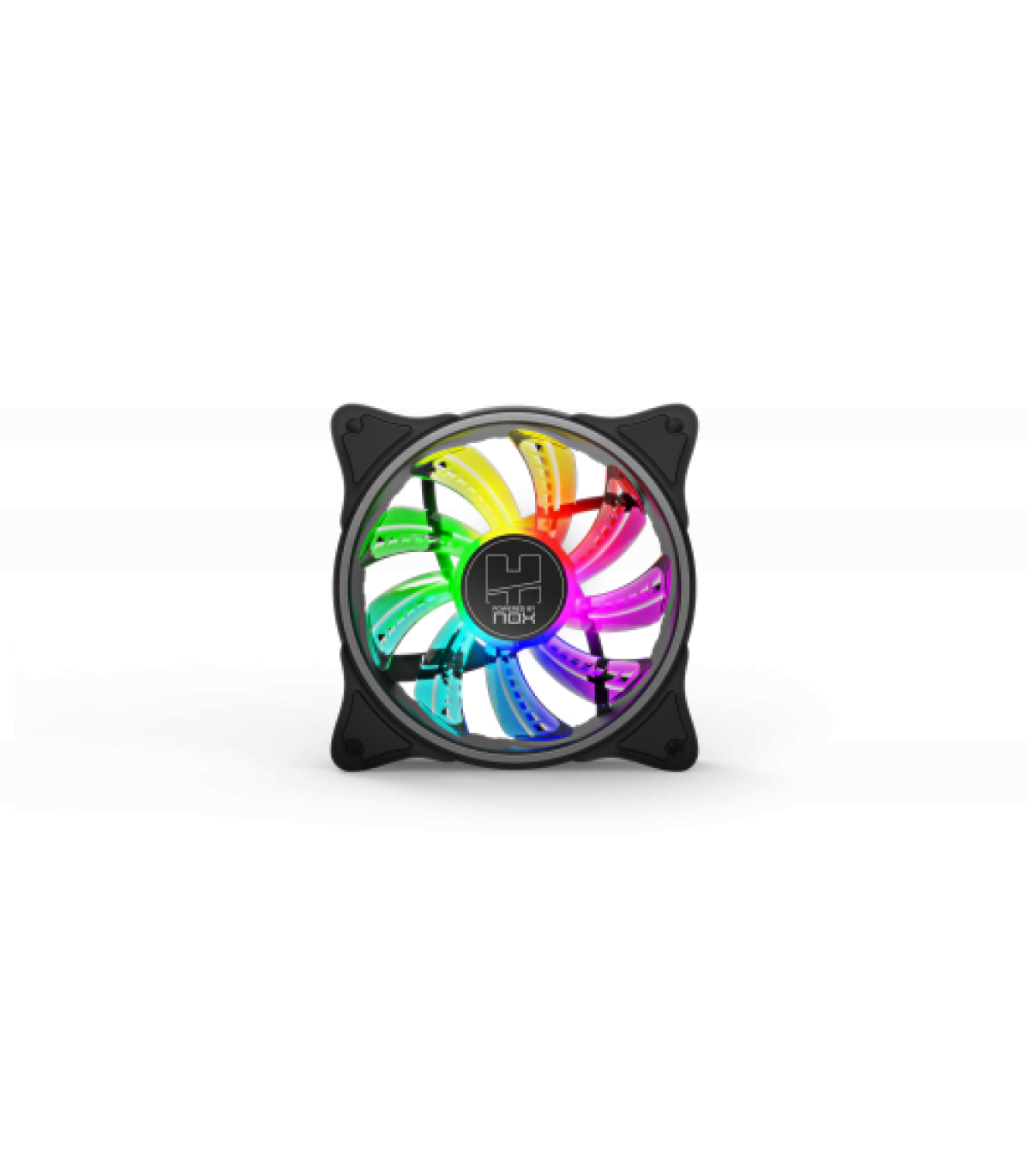 A-FanARGB inner glow fanNox Hummer A-FAN es el ventilador perfecto para aquellos que no quieren renunciar a las mejores prestaciones. El silencioso ventilador de Nox de 120 mm ofrece un gran flujo de aire y una muy baja sonoridad, siendo ideal para completar la configuración de tu equipo gaming profesional. Eficiente, disipando el calor de la manera más óptima, y ultrasilencioso, así es Nox Hummer A-FAN.Refrigeración a todo colorEl ventilador Nox Hummer A-FAN cuenta con una viva iluminación LED ARGB, un diseño en sus aspas que te brindará la estética gaming que tanto deseas, siendo el perfecto acompañante en las partidas nocturnas, pudiendo crear diferentes atmósferas de juego según las partidas. Podrás personalizar y sincronizar el ventilador con el resto de tu setup, vistiendo todo de los colores de la victoria, ofreciendo un aspecto único lleno de luz.Alto rendimiento, bajo nivel sonoroNox Hummer A-FAN es un ventilador con un cuidado diseño de 120 x 120 x 25 mm que genera el flujo de aire que necesitan los componentes de tu equipo. Cuenta con 9 aspas aerodinámicas que aseguran el correcto caudal en todo momento.Este ventilador LED ARGB ofrece potencia a un muy bajo nivel sonoro, ya que sus esquinas incorporan soportes de goma que absorben y amortiguan las vibraciones de la rotación del ventilador, al tiempo que garantizan estabilidad.Nox Hummer A-FAN es un ventilador construido en materiales de calidad que aseguran 40 mil horas de vida útil.Innovador diseñoEl silencioso ventilador Nox Hummer A-FAN se instala fácilmente gracias a su conector de corriente de 6 pines, 3 pines hembra y 3 pines macho, permitiéndote estos últimos conectar más ventiladores en serie, multiplicando el caudal de aire del chasis de forma efectiva, optimizando el rendimiento.