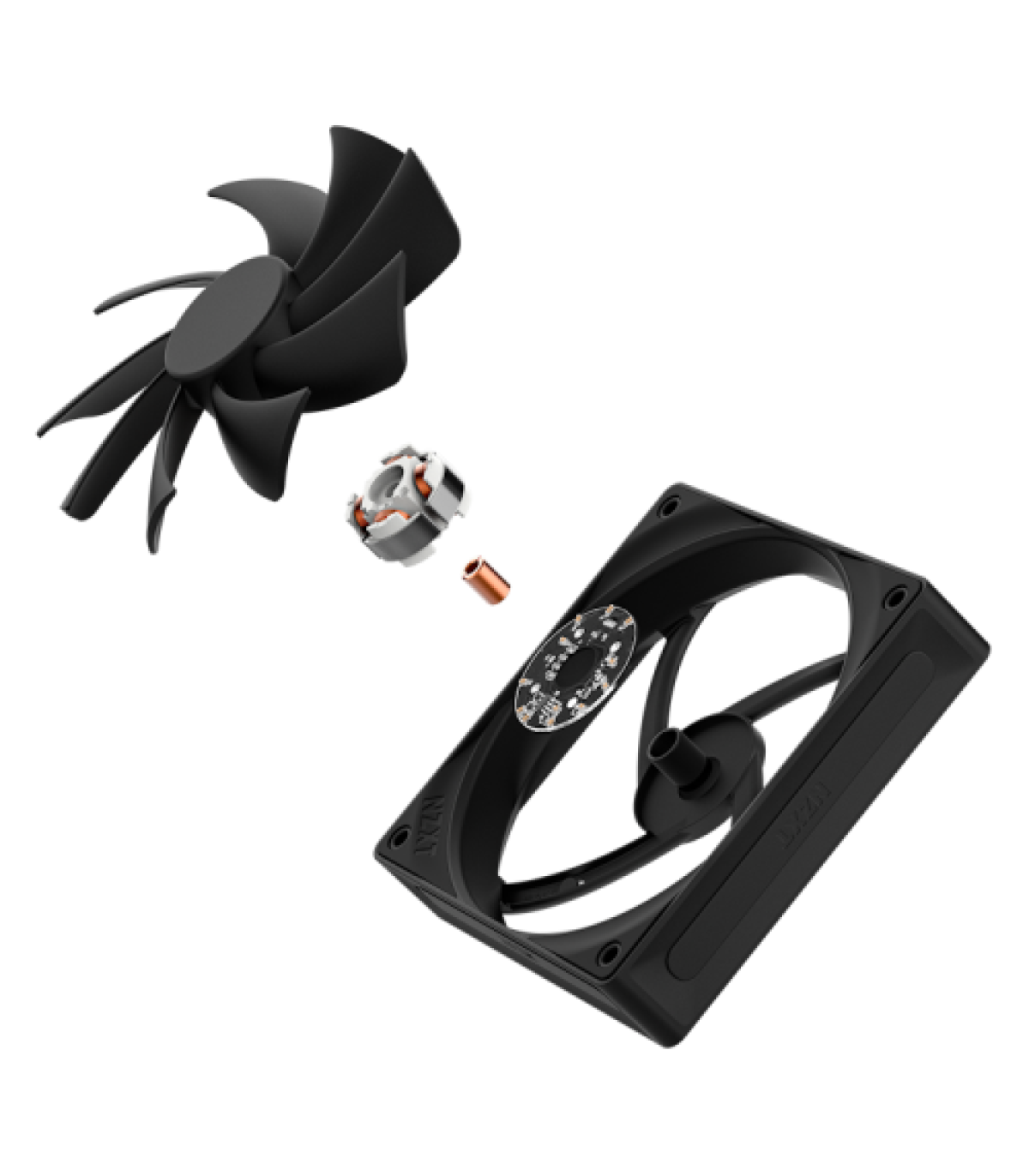 NZXT RF-Q12SF-B2. Tipo: Ventilador, Diámetro de ventilador: 12 cm, Velocidad de rotación (mín.): 500 RPM, Velocidad de rotación (máx.): 1700 RPM, flujo de aire: 74,26 m³/h, Tipo de soporte: Rodamiento dinámico fluido (FDB). Ancho: 120 mm, Profundidad: 25 mm, Altura: 120 mm. Color del producto: Negro