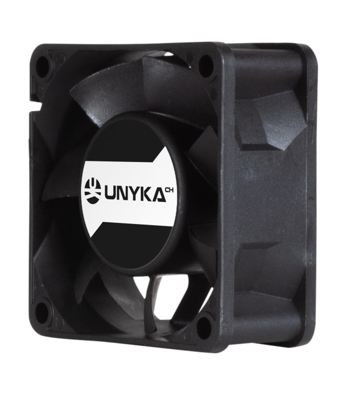 Ventilador Unykach Server 60 x 60 x 25 mm de doble bola para mejorar su vida útil de uso y posee un conector de 4 Pines con control de temperatura.