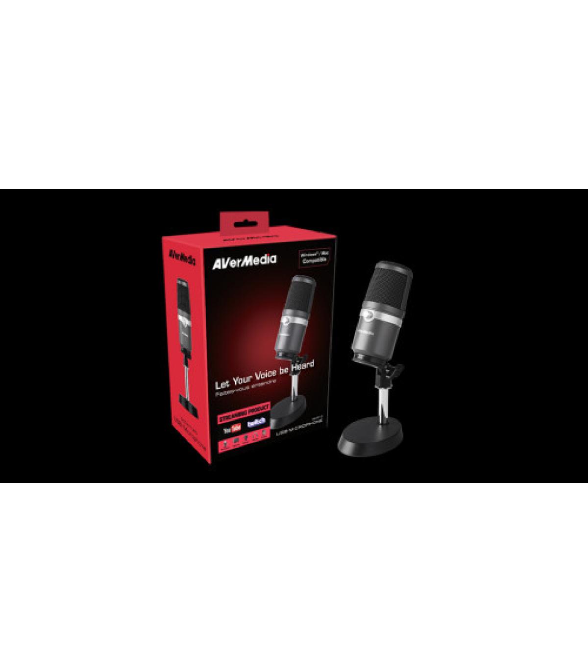 AVerMedia USB Microphone AM310 es un micrófono USB plug and play que permite grabar sonido de alta calidad para podcasting, streaming, gaming y mucho más. Sumérgete y haz disfrutar a tu audiencia de un sonido grabado mas claro, rico y de calidad.\n\nGraba audio como un profesional\nAVerMedia USB Microphone AM310 esta diseñado para música en directo y streamers que buscan un sonido de calidad. El condensador con el que cuentan registra las fuentes de sonido que están en la parte frontal del micrófono, proporcionando detalle, precisión y sonidos sin perder un sólo detalle.\n\nFácil configuración\nLibre de drivers este modelo es plug-and-play, su instalación es rápida y sencilla: simplemente conectar a un puerto USB de su PC o Mac y listo para grabar.\n\nMonitorización en directo\nAVerMedia USB Microphone AM310 cuenta con una toma de auriculares de 3,5 mm que le permite escuchar lo que se está grabando en tiempo real o mientras está jugando en su pc.\n\nReproducción automática/Salida predeterminada\nPara disfrutar del directo, AM310 le permite controlar su voz en directo durante el streaming. Al conectar tu AM310 a tu PC, este identifica un dispositivo de reproducción de salida. Sólo tendrás que conectar los auriculares en la parte posterior de AM310 ¡y empezar a disfrutar de la experiencia! ¿Quieres cambiarlo de nuevo? ¡No hay problema! Igual de sencillo. \n\nEn el PC\nPaso 1: Ve al menú de Inicio → Panel de Control → Hardware y sonido→ Sonido→ Administrar dispositivos de audio\nPaso 2: Bajo “Playback”, haga click en el botón derecho para DESACTIVAR AM310, y conecte su dispositivo de reproducción deseado\n\nEn Mac\nPaso 1: Ve a Preferencias del Sistema → Sonido → Salida\nPaso 2: Selecciona tu dispositivo de salida deseado de la lista\n\nGraba voz e instrumentos\n¿Quieres grabar una demo en un estudio? ¡No hay problema! AM310 es la mejor opción para grabar de una sola fuente frente al micrófono. Si eres vocalista o instrumentista, cada nota o sonido será capturada al detalle.\n\nIdeal para Gaming: Transmite en directo\n¿Estás buscando mejorar tu voz en streaming? No busques más. Godwit 310 ofrece el mejor sonido, calidad y las mejores especificaciones. Dale "glamour" a tu canal y alcanza el siguiente nivel.
