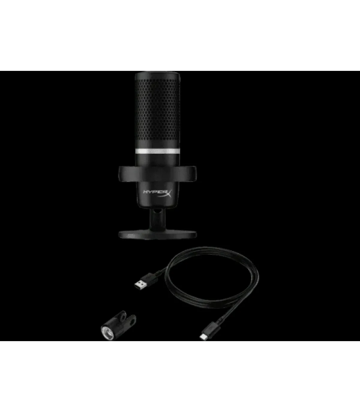 Micrófono USB con estilo y sonido destacados.Con un diseño elegante, un montaje de choque de bajo perfil y un elegante anillo de luz RGB, el HyperX DuoCast es un micrófono USB con todas las funciones diseñado para jugar, trabajar y crear contenido. Comparte las funciones favoritas de los fanáticos de sus hermanos de micrófono HyperX, como tocar para silenciar y el vibrante indicador LED de silencio del micrófono, pero también trae su propio estilo único y sutil. Un amortiguador de perfil bajo complementa la estética elegante y minimalista, al mismo tiempo que absorbe las vibraciones y ocupa menos espacio. Un adaptador de montura incluido permite la compatibilidad con la mayoría de las monturas y el versátil DuoCast también es compatible con PC, PS5™, PS4™ y Mac®. Use el software HyperX NGENUITY y personalice el anillo de luz RGB para transmitir su propio estilo característico.Anillo de luz RGB personalizableEl elegante anillo de luz RGB le da al DuoCast un toque de estilo RGB vibrante con 2 zonas personalizables. Diseñado para juegos, pero lo suficientemente profesional para manejar negocios.Montaje de choque de perfil bajoForma y función: el diseño elegante y minimalista también contiene un amortiguador para reducir la captación de ruidos y vibraciones no deseadas.Grabación de alta resolución de 24 bits/96 kHzCapture grabaciones precisas y con bajo nivel de ruido con la alta profundidad de bits y la frecuencia de muestreo de DuoCast.Sensor Tap-to-Mute y ajuste de control de gananciaLa conveniente funcionalidad de tocar para silenciar y una perilla de ajuste de control de ganancia fácil de usar le permiten controlar el sonido de su transmisión.Compatibilidad de hardwarePC, PS5™, PS4™, Mac®