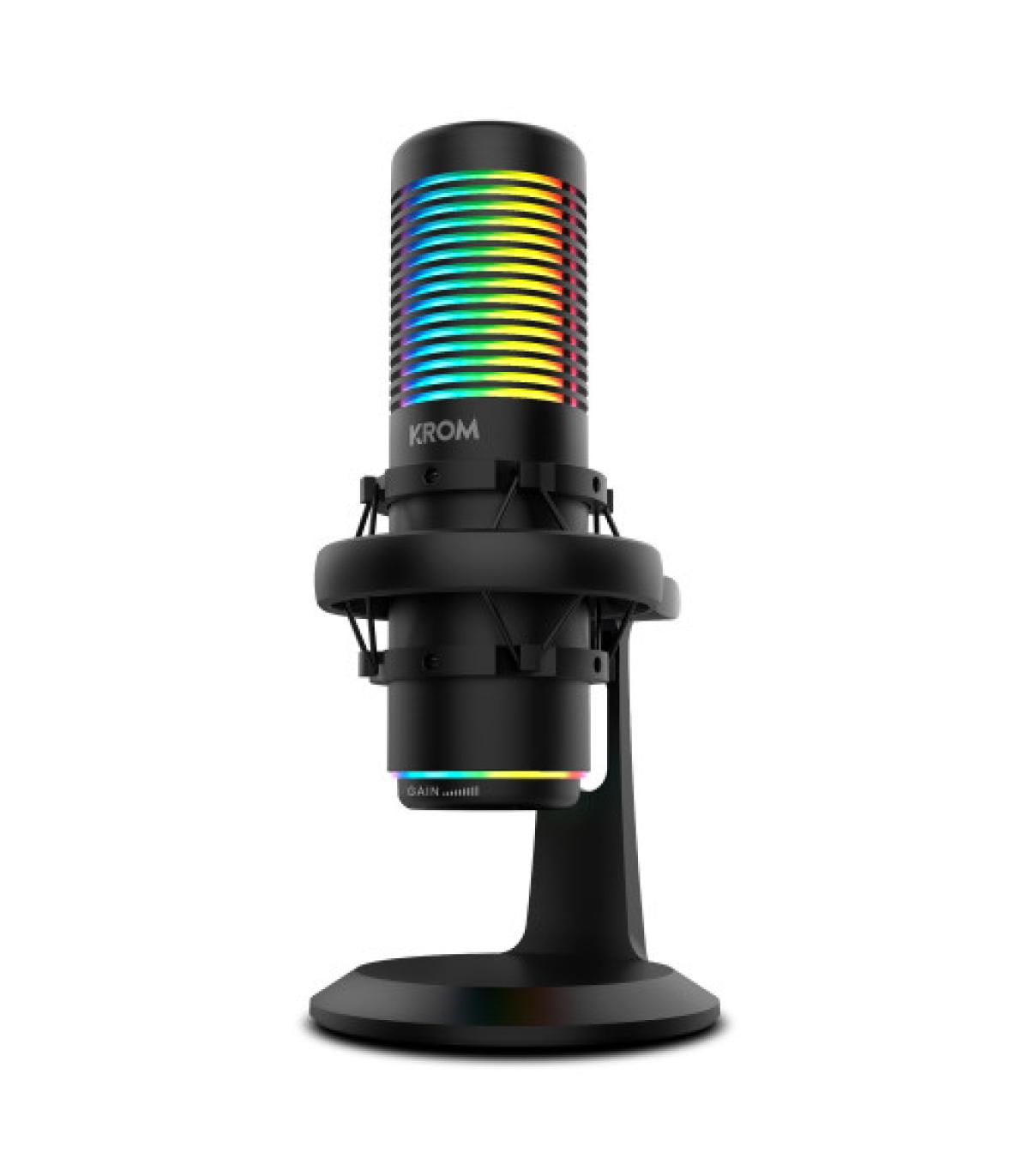 Krom Kaze es un micrófono de condensador doble con calidad de estudio HD, con montura antishock, con el que conseguirás el mejor sonido en tus streamings, podcasts, conversaciones o grabaciones musicales.