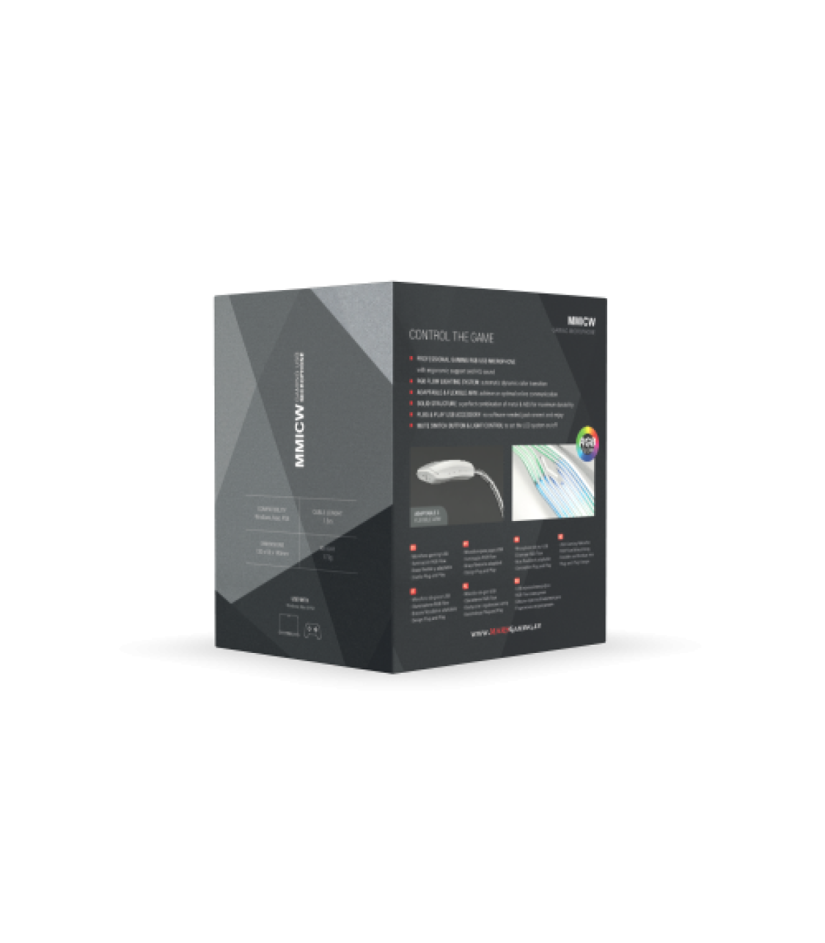 MICRÓFONO GAMING MMICEl MMIC de Mars Gaming combina las ventajas de los micrófonos PRO omnidireccionales con un sistema RGB Flow que potencia el look de tu setup de la mejor forma posible: diseño Plug & Play, brazo flexible y adaptable, botón Mute y una estructura perfecta para captar tu voz desde el escritorio sin necesidad de auriculares. Descubre la mejor manera de retransmitir tus vídeos online o comunicarte de forma fácil con una calidad profesionalControla la partidaDiseñado para conseguir la mejor experiencia para tu streaming: cómodo, rápido y sin complicaciones- Tecnología Omnidireccional- Iluminación RGB Flow- Brazo de aluminio flexible y adaptable- USB Plug & PlayUNA NUEVA FORMA DE JUGAR ONLINEGracias a un diseño moderno con iluminación LED RGB y una estructura totalmente adaptable, el MMIC es el complemento perfecto para streamers, youtubers o jugadores competitivos. Podrás conectarte y empezar a retransmitir sin necesidad de auriculares con micrófono. Simplemente conéctalo... ¡y disfruta!LA MEJOR ESTÉTICA GAMINGOlvídate de micrófonos oscuros y apagados: el MMIC de Mars Gaming dispone de un sistema especial RGB Flow cubriendo su base, generando un flujo constante de colores sobre tu escritorio que cambiará por completo el look de tu setup desde el momento en que enciendas el micrófono.USB PLUG & PLAYEl MMIC no necesita software ni instalaciones de ningún tipo. Simplemente conecta su USB al ordenador y adéntrate en el mundo online: juega, habla, participa en la comunidad... Fácil y cómodo, está diseñado para ofrecer la experiencia más fácil y cómoda para aquellos que buscan iniciarse en el mundo del streaming, ya sea jugando en directo, con amigos o comentando los mejores gameplays.FLEXIBLE Y ADAPTABLEEl MMIC está diseñado con una base sólida de ABS y un brazo flexible de aluminio totalmente moldeable para adaptarse al usuario. Coloca el micro donde quieras y sitúa el micrófono cerca para conseguir un setup óptimo y listo para jugar sin preocupaciones.CONTROL ABSOLUTOEl botón especial del MMIC te permite silenciar el micrófono en cualquier momento y apagar la iluminación, para esas veces en las que prefieres un setup apagado y minimalista. Controla el rendimiento y el aspecto de tu MMIC en todo momento de la forma más cómoda y rápida.