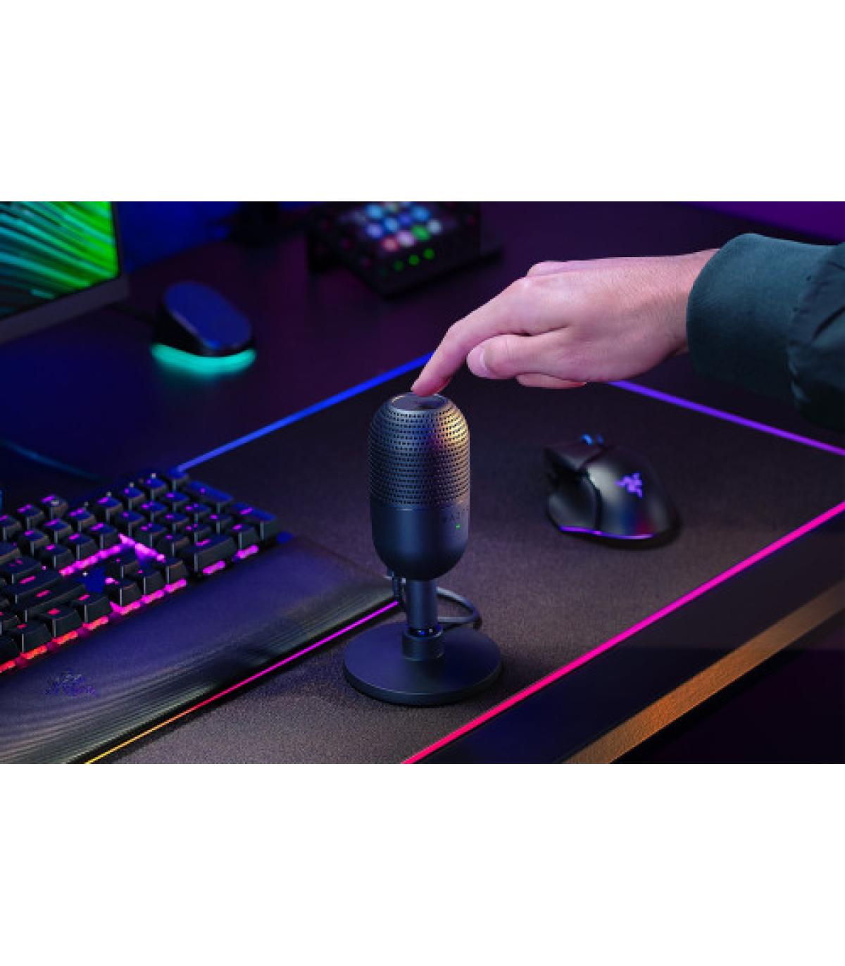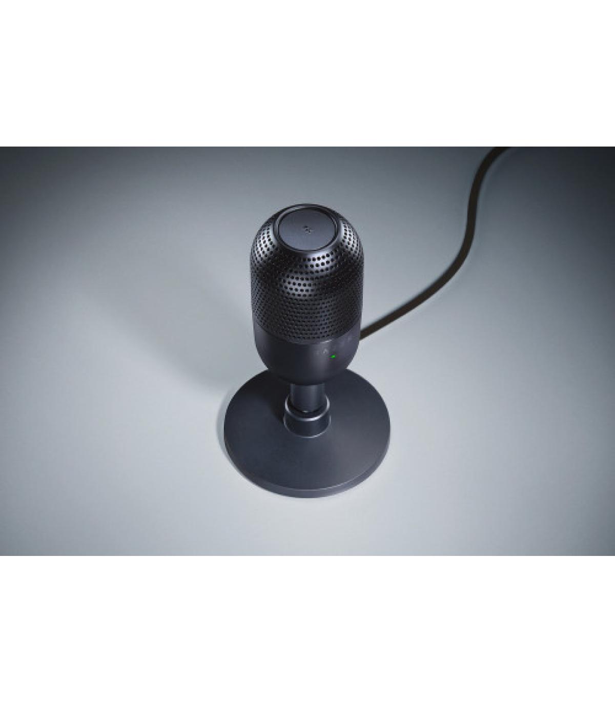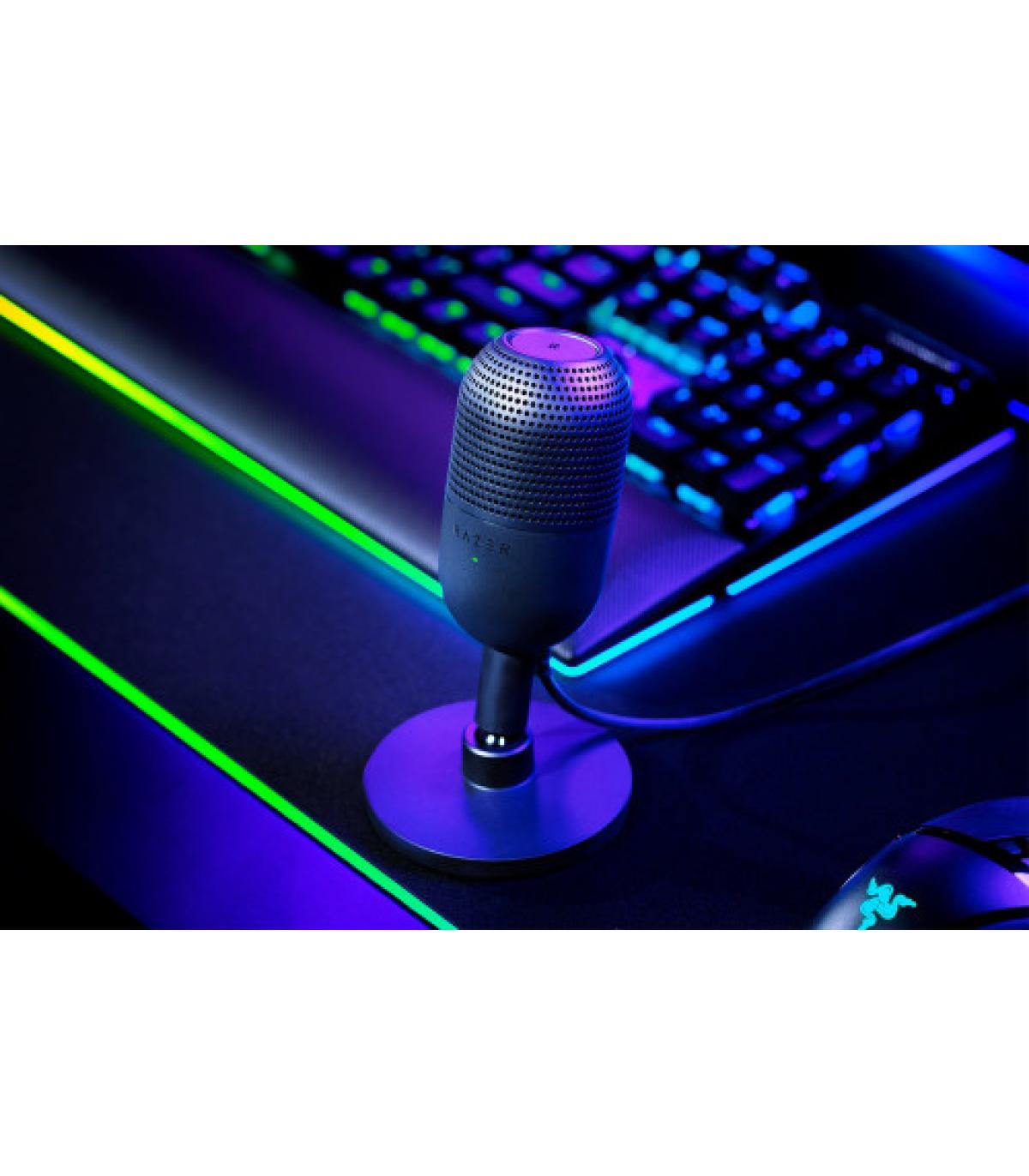 Razer Seiren V3 Mini. Tipo: Micrófono de superficie para mesa, Sensibilidad de micrófono: 110 dB, Frecuencia de micrófono: 20 - 20000 Hz. Tecnología de conectividad: Alámbrico, Interfaz del dispositivo: USB, Conector USB: USB Tipo C. Color del producto: Negro, Género: Niño/niña. Fuente de energía: USB, Voltaje de operación: 5 V, Consumo de energía: 350 mA. Número de productos incluidos: 1 pieza(s)