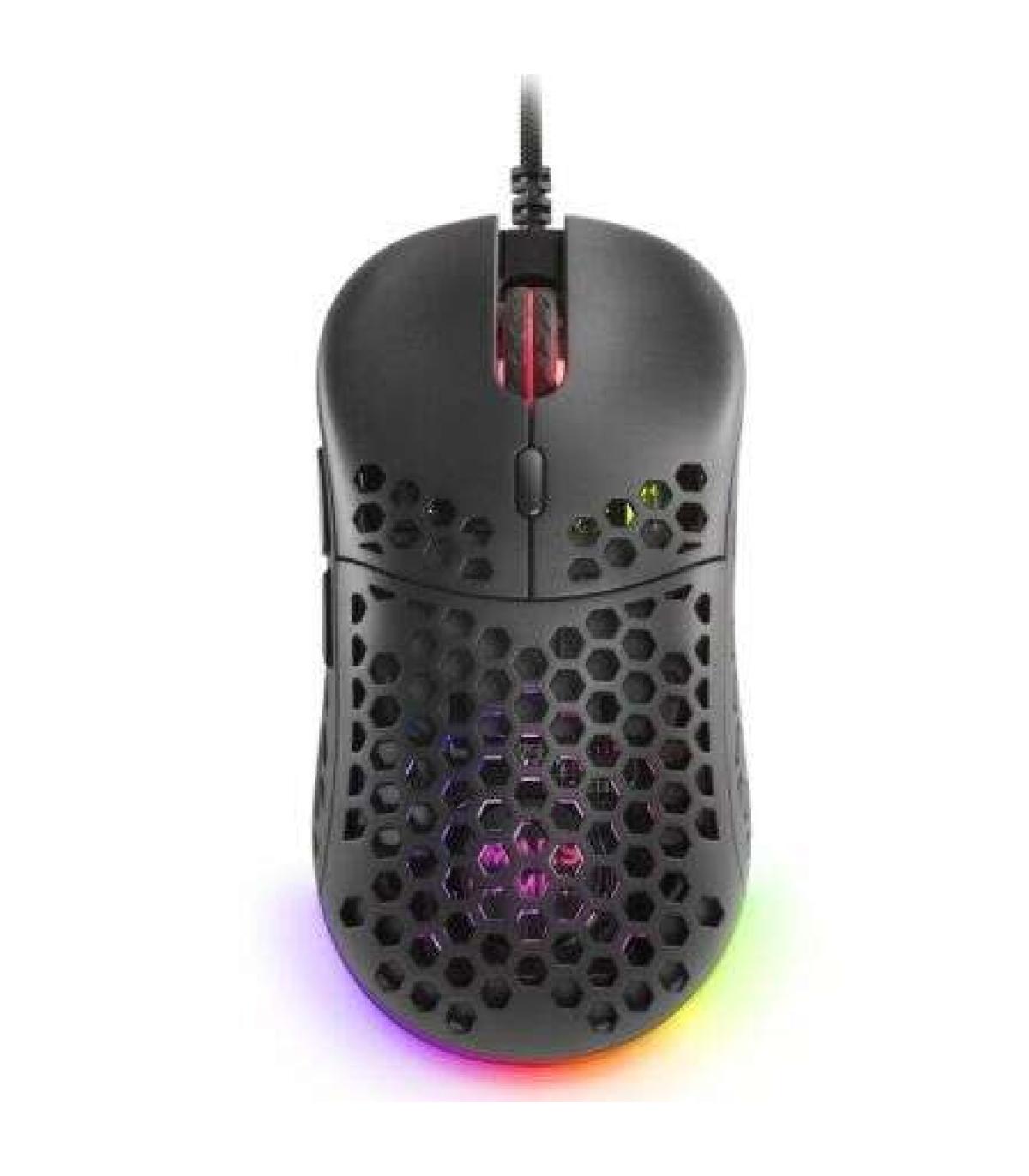 Con tan solo 55 gramos es uno de los ratones más ligeros del mundo. Sin renunciar a las mejores prestaciones con una óptica avanzada de 12800 DPI, espectacular iluminación RGB, cable ultra-ligero Paracord, switches mecánicos Huano y un potente software de control.