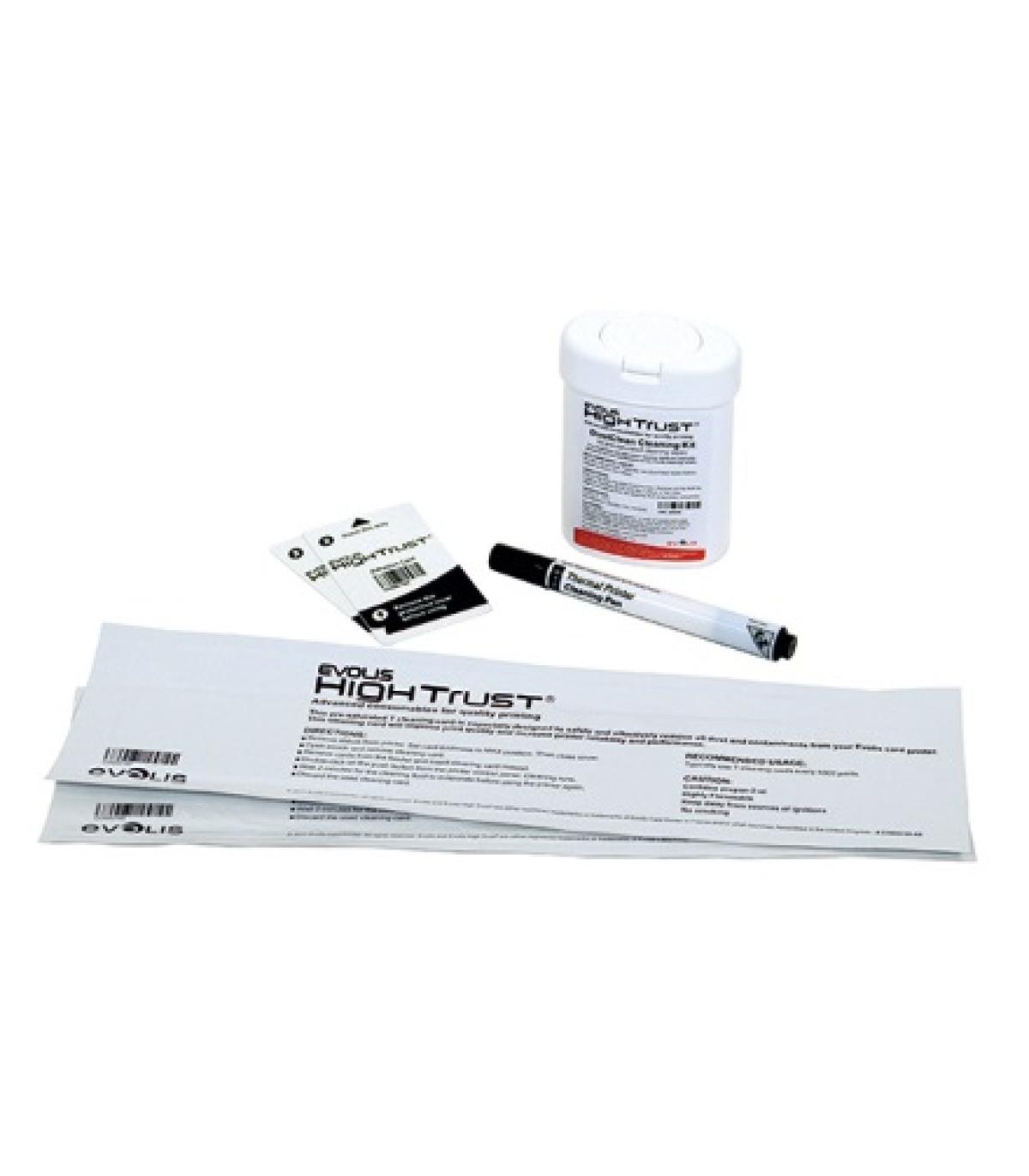 Evolis Kit de Limpieza Avanzado Incluye 2 tarjetas tipo T prehumedecidas, 2 tarjetas adhesivas, 1 cleaning pen, 1 dispensador de 60 toallistas prehumedecidas sin pelusa. Compatible con modelos: Zenius Primacy Primacy Lamination Edikio Flex Edikio Duplex