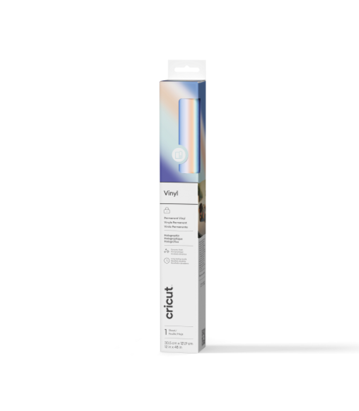 Cricut 2011349. Tipo de producto: Rollo de vinilo de termotransferencia, Color del producto: Azul, Coloración: Holográfico. Ancho: 305 mm, Longitud: 1200 mm. Tipo de embalaje: Envase para colgar