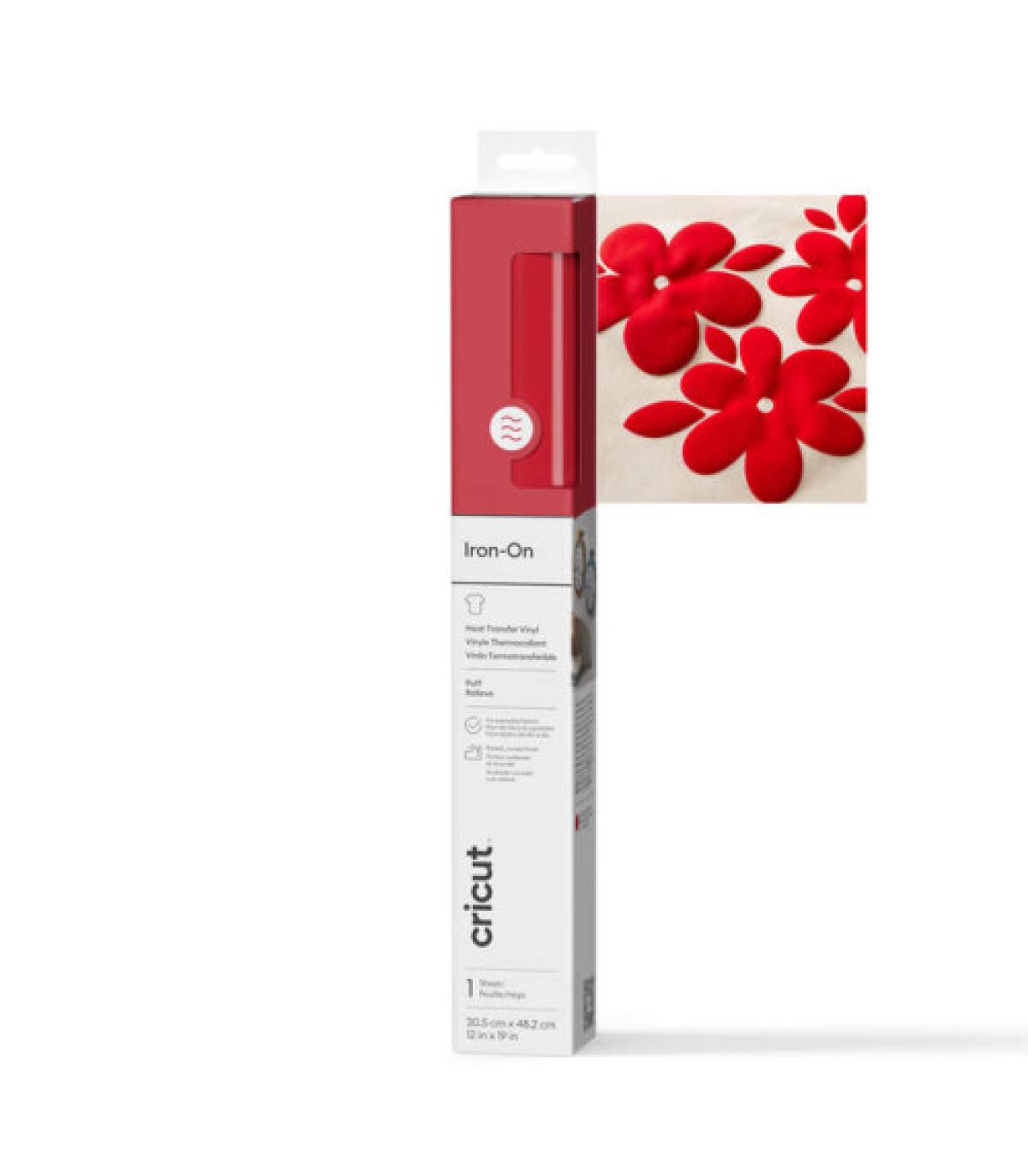 Cricut 2011773. Tipo de producto: Rollo de vinilo de termotransferencia, Tipo: Vinilo de termotransferencia liso, Color del producto: Rojo. Ancho: 305 mm, Longitud: 483 mm. Tipo de embalaje: Envase para colgar
