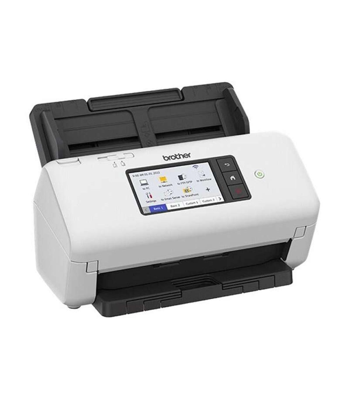 Escáner profesional muy rápido, con conexión por USB, red cableada o WiFi. Puede escanear a velocidad de hasta 80 páginas por minuto a doble cara y dispone de una capacidad de alimentación (ADF) de 80 hojas. Permite escanear directamente a carpetas de red sin necesidad de estar conectado a un PC. La pantalla táctil contribuye a la productividad, permitiendo crear accesos directos a cualquier carpeta de red. Funciones estándar: Escaneado a PC, Imagen, Red (SMB), Servidor de Email, Flujo de trabajo, FTP/SFTP, SharePoint (On Premise), Brother Web Connect, Escaneado a HTTP(S), Brother Apps