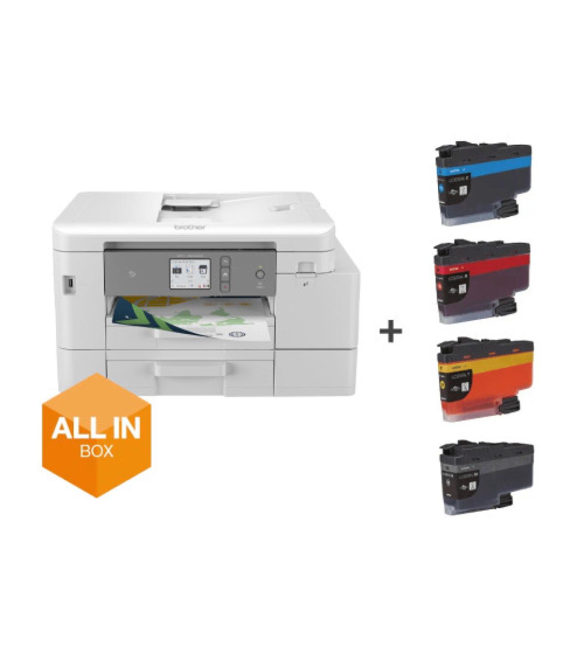 Brother MFC-J4540DWXL. Tecnología de impresión: Inyección de tinta, Impresión: Impresión a color, Resolución máxima: 4800 x 1200 DPI. Copiando: Copia a color, Resolución máxima de copia: 1200 x 1200 DPI. Escaneando: Escaneo a color, Resolución óptica de escáner: 1200 x 2400 DPI. Enviando por fax: Fax a color. Funciones dúplex: Copiar, Imprimir, Escanear. Tamaño máximo de papel ISO A-series: A4. Wifi. Impresión directa. Color del producto: Blanco