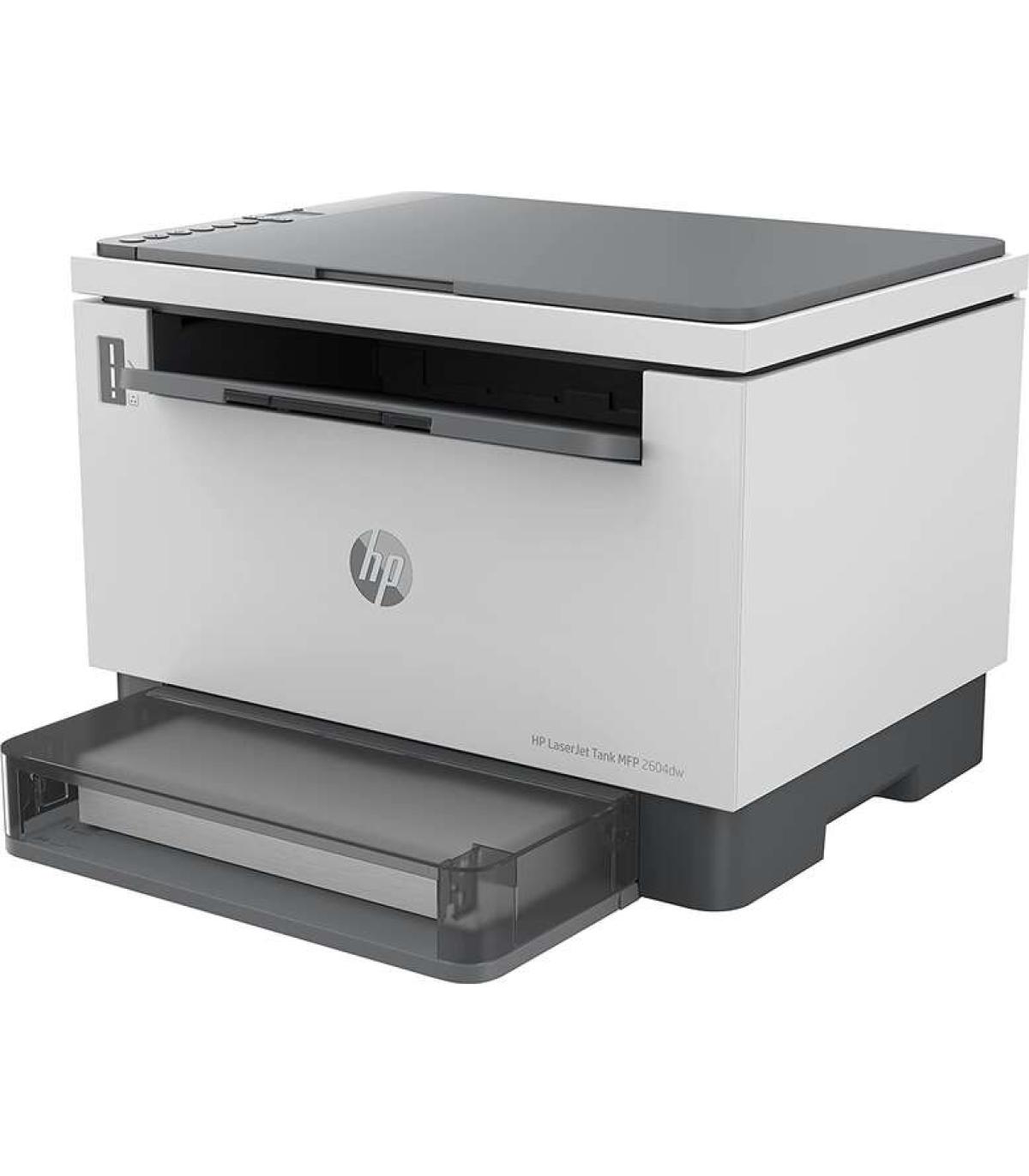 Descubre las capacidades empresariales y el ahorro de la impresora multifunción HP LaserJet Tank 2604dw previamente cargada con hasta 5000 páginas de Tóner Original HP.