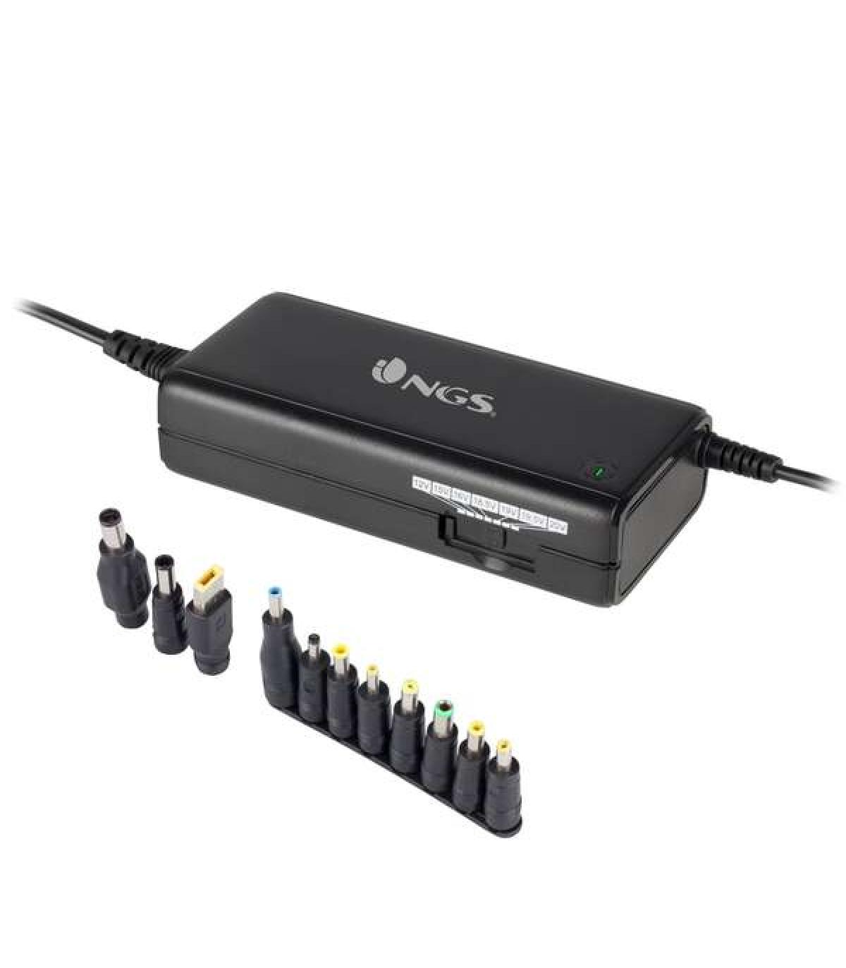 Está equipado con un indicador LED que se ilumina cuando el cargador está conectado a la corriente eléctrica. NGS Ban posee además un selector de corriente con el que podrás elegir diferentes tensiones, en función de las necesidades de cada portátil (12-20 V). Por último, incluye once conectores intercambiables que aseguran la compatibilidad con la mayoría de las marcas y dispositivos que existen en el mercado.