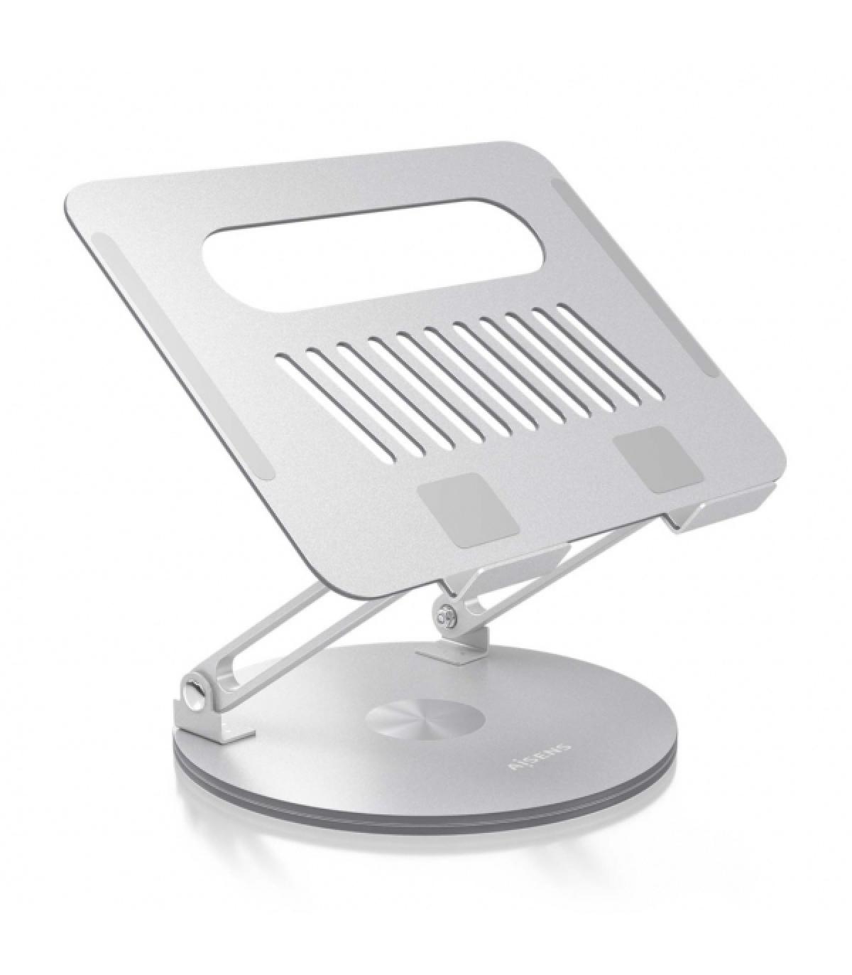 Aisens Soporte Sobremesa XL Giratorio y Ajustable para Portátil o Tablet - Aleación de Aluminio - Rotación 360° - Plegable y Compacto - Antideslizante - Compatible 10-17 ?