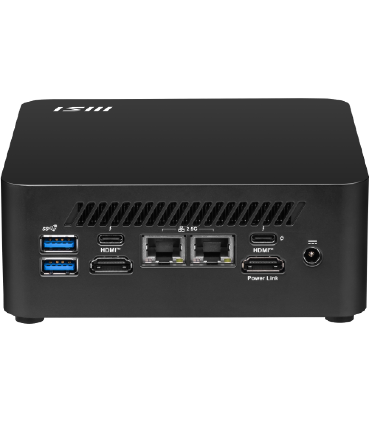 MSI CUBI NUC 1MG-238BEU. Tipo de chasis: 0.84L sized PC, Tipo de producto: Mini PC barebone. Chipset: Intel® SoC. tipos de memoria compatibles: DDR5-SDRAM, Número de ranuras de memoria: 2, Memoria interna máxima: 64 GB. Tipos de unidades de almacenamiento admitidas: HDD & SSD. Ethernet LAN (RJ-45) cantidad de puertos: 2. Wi-Fi estándares: Wi-Fi 6E (802.11ax), Versión de Bluetooth: 5.3. Tipo de enfriamiento: Activo. Fuente de alimentación: 120 W
