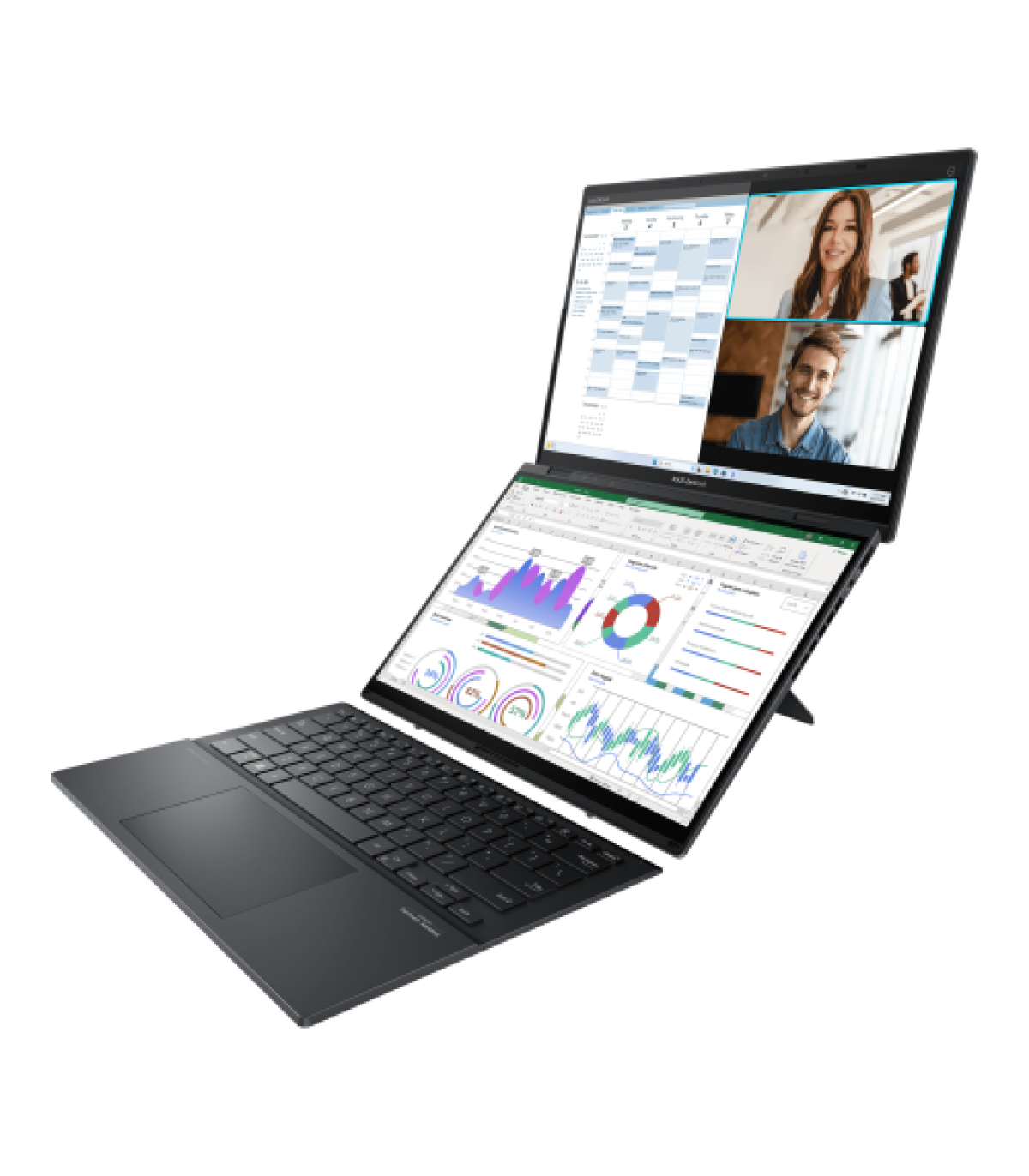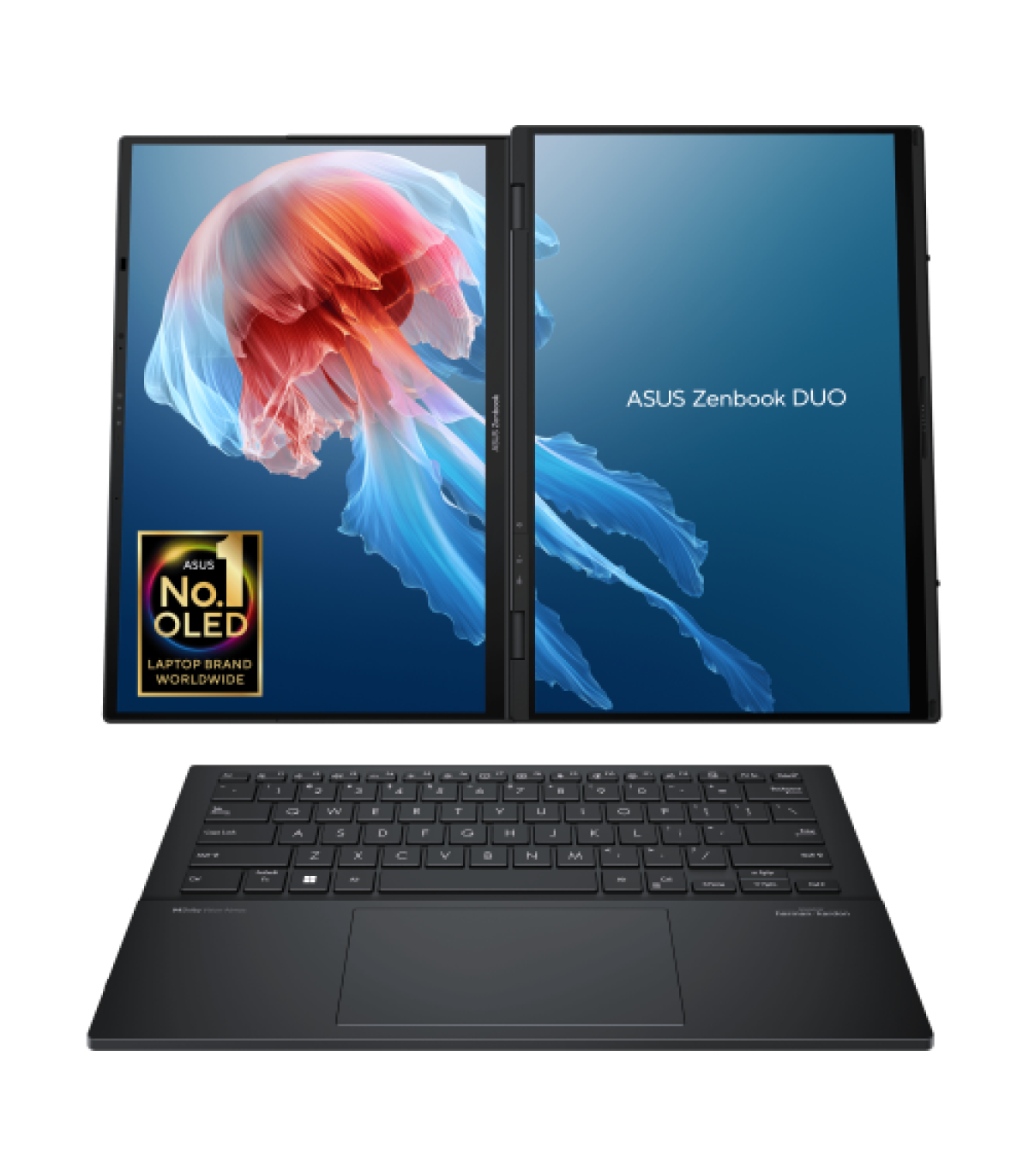 El ASUS Zenbook DUO es un portátil revolucionario de pantalla doble. Este increíble ordenador, que personifica la innovación CES 2024, incorpora dos pantallas táctiles OLED de tamaño completo, teclado desmontable de tamaño completo y soporte integrado. Es el portátil definitivo que combina a la perfección la versatilidad de la multitarea con una excelente movilidad. Con estas las dos pantallas táctiles OLED 3K de 14 pulgadas a 120 Hz, puedes ampliar al instante tu espacio de trabajo hasta 19,8 pulgadas. El ASUS Zenbook DUO cuenta con un procesador Intel® Core™ Ultra 9 potenciado por IA y memoria LPDDR5x de 32 GB. Además, viene equipado con SSD PCIe® 4.0 de hasta 2 TB. Es un portátil que te garantiza un rendimiento excepcional en todo momento para que puedas con todo. Incorpora software inteligente dedicado, control intuitivo por gestos y una batería de 75 Wh de duración mejorada. Todo ello convierte al Zenbook DUO en un portátil ASUS fácil de usar que maximiza la productividad sin complicaciones. Vamos, ¡dobla tu apuesta!