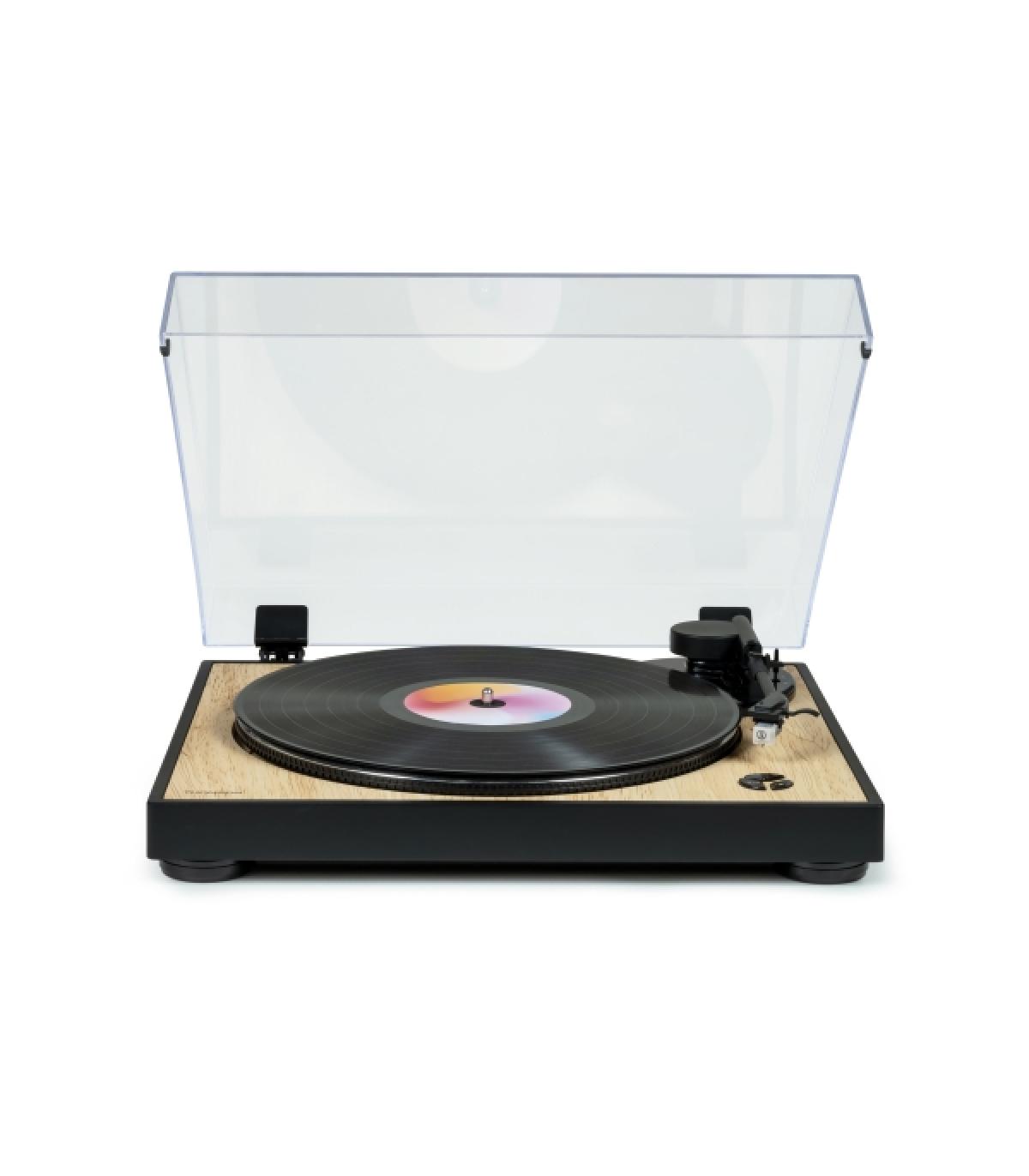 Con su diseño decididamente moderno, este tocadiscos Thomson TT300 se adapta a cualquier interior. Te permitirá escuchar todos tus vinilos, 33 y 45 rpm, de forma óptima gracias al cartucho AT3600L Audio-Technica.