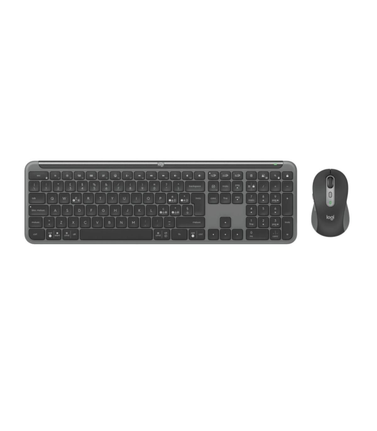 El diseño elegante y la calidad de construcción del Signature Slim Keyboard K950 de tamaño normal mejoran cualquier escritorio. Esto se complementa con Signature Plus Mouse M750 y su cómoda forma contorneada, una combinación estupenda hecha con plástico reciclado.