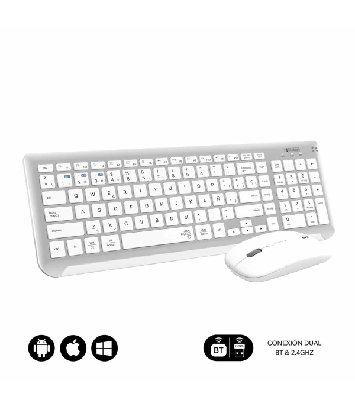 Subblim Combo Dual Prestige - Teclado y Raton Inalambricos - Bluetooth y 2.4G - Funcionamiento Silencioso - Color Blanco Plata