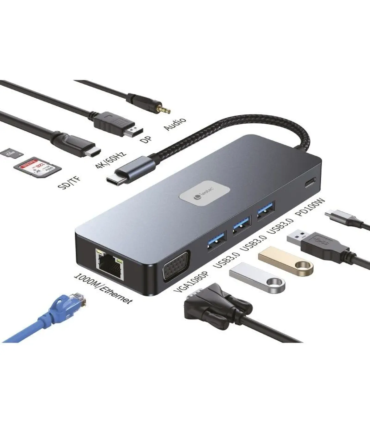 Docking USB Tipo-C Leotec LEDS03/ 3xUSB/ 1xUSB Tipo-C PD/ 1xHDMI 4K/ 1 xDisplayPort/ 1xVGA/ 1xAudio/ 1xRJ45/ 1xLector Tarjetas S