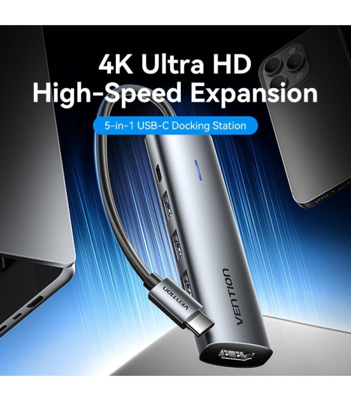 El HUB de expansión multifuncional VENTION TGG 5 en 1 es la solución perfecta para quienes necesitan conectar varios dispositivos al mismo tiempo. Con la capacidad de convertir de Tipo C a HDMI, USB y fuente de alimentación, el producto le ayuda a ampliar fácilmente su espacio de trabajo y optimizar el rendimiento laboral.