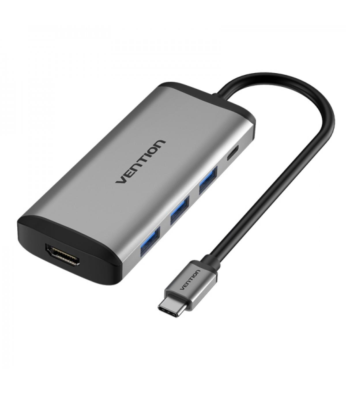 VENTION Convertidor Tipo C a HDMI/USB3.0*3/PD - USB-C/M-3xUSB 3.0/H-1xHDMI/H-1xPD/H - Color Gris