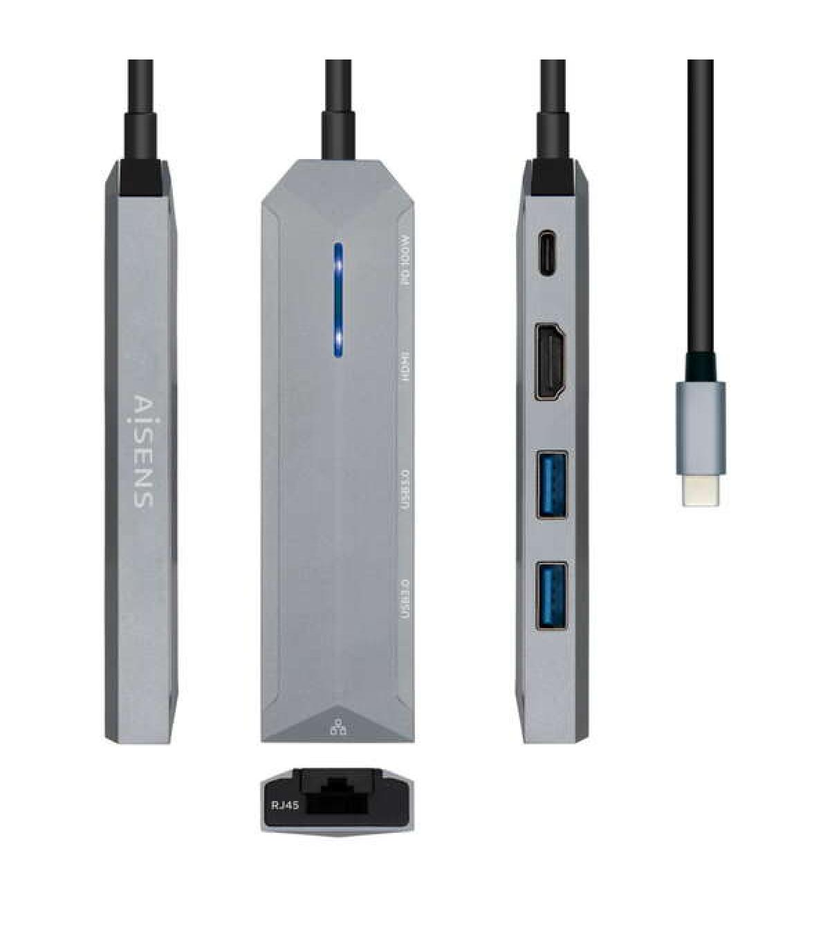 -Conversor USB-C a 1xHDMI, 1xRJ45, 2xUSB, 1xPD 100W