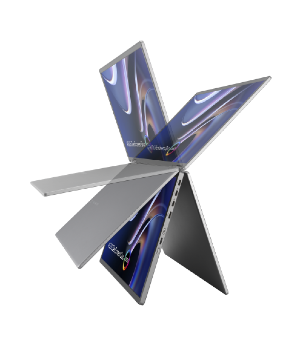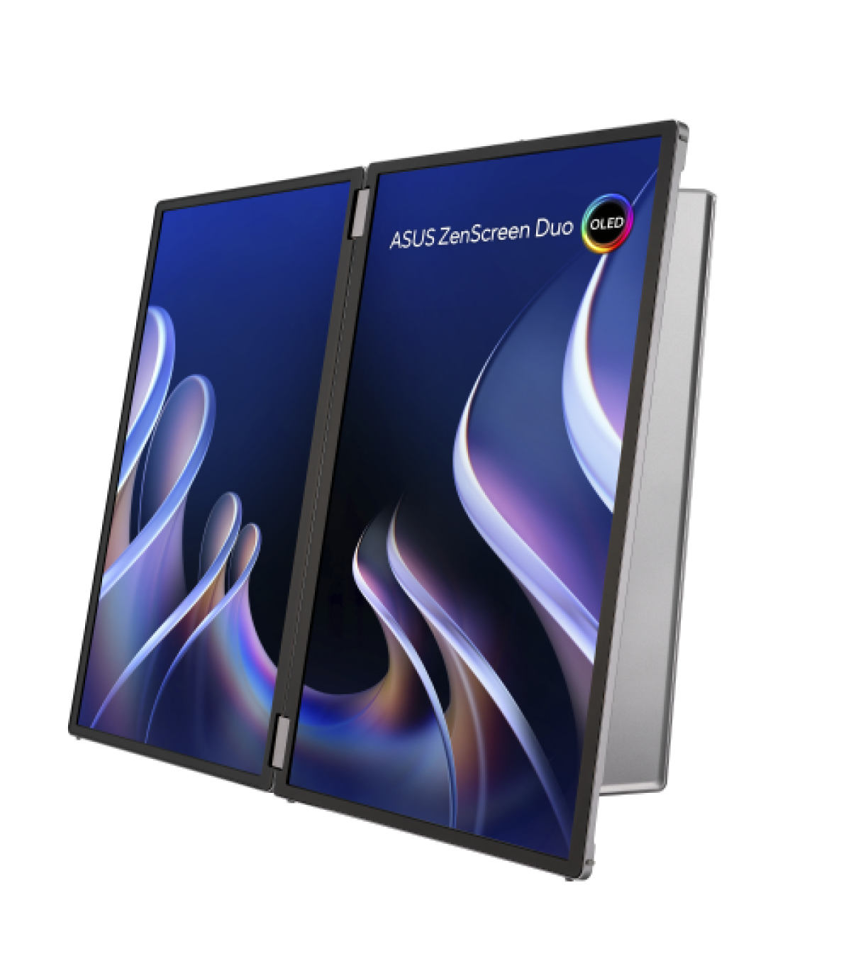 ASUS ZenScreen Duo OLED MQ149CD. Diagonal de la pantalla: 35,6 cm (14"), Resolución de la pantalla: 1920 x 1200 Pixeles, Tipo HD: WUXGA, Tecnología de visualización: OLED, Superficie de la pantalla: Brillo, Tiempo de respuesta: 1 ms, Relación de aspecto nativa: 16:10, Ángulo de visión, horizontal: 176°, Ángulo de visión, vertical: 176°. Color del producto: Plata
