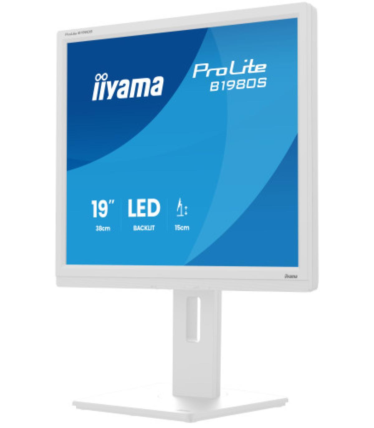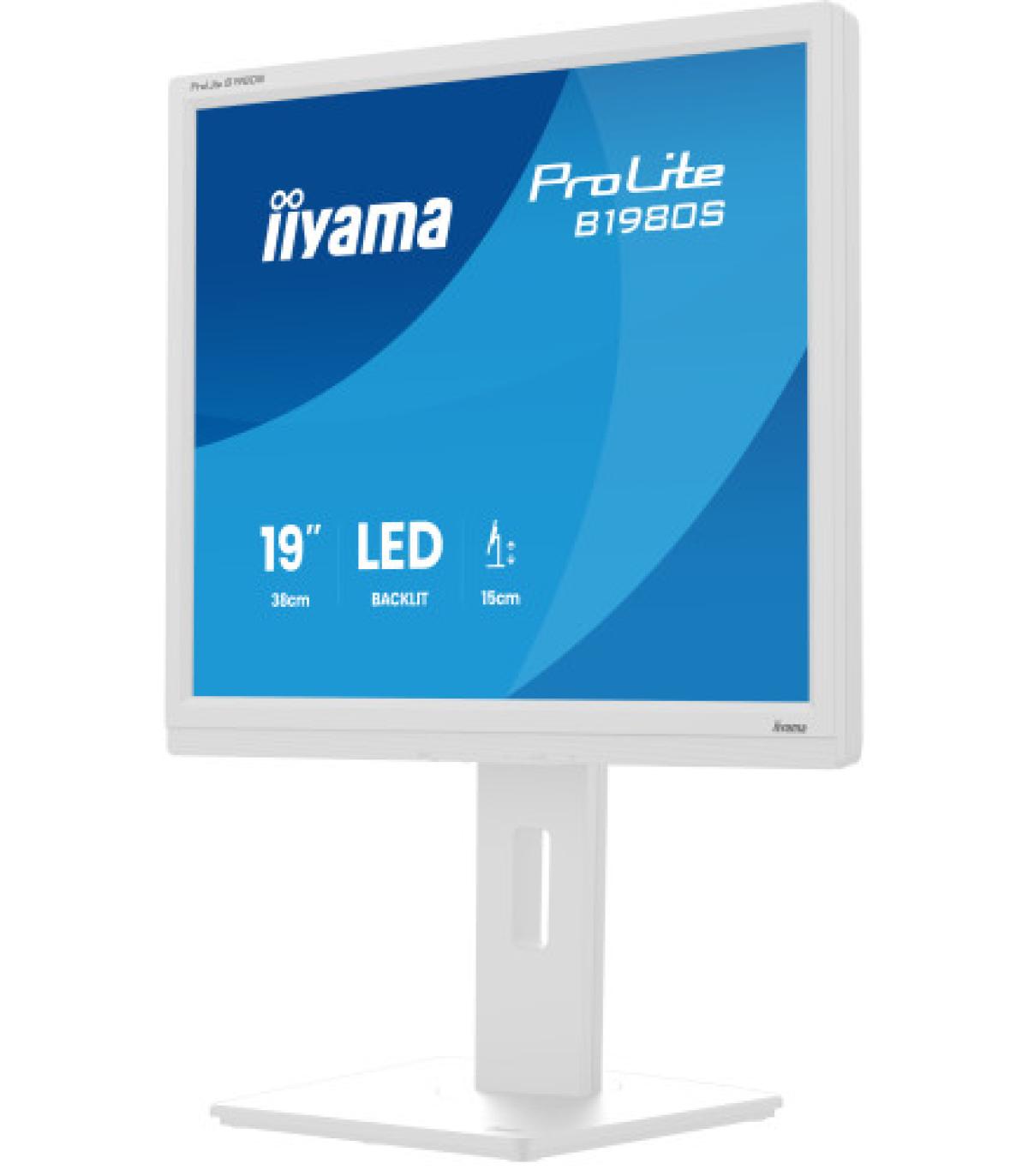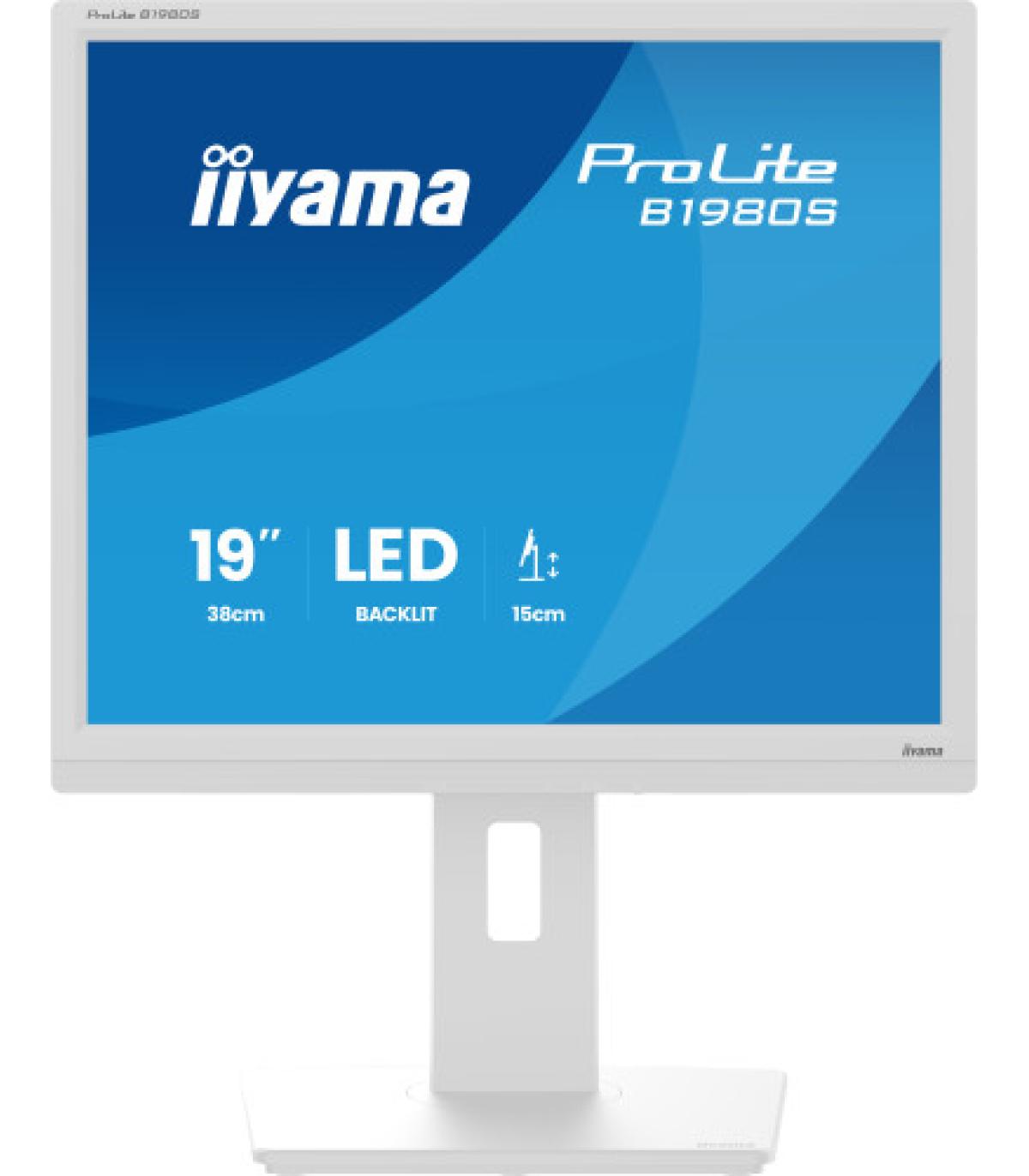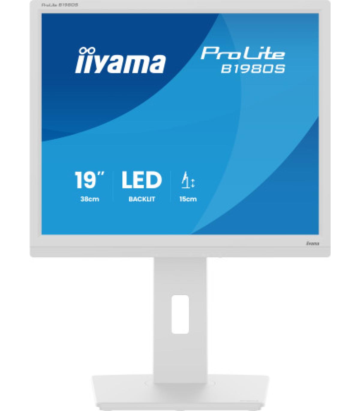 iiyama ProLite B1980S-W1. Diagonal de la pantalla: 48,3 cm (19"), Resolución de la pantalla: 1280 x 1024 Pixeles, Tipo HD: SVGA, Tecnología de visualización: LED, Tiempo de respuesta: 3 ms, Relación de aspecto nativa: 5:4, Ángulo de visión, horizontal: 170°, Ángulo de visión, vertical: 160°. Altavoces incorporados. montaje VESA, Ajustes de altura. Color del producto: Blanco