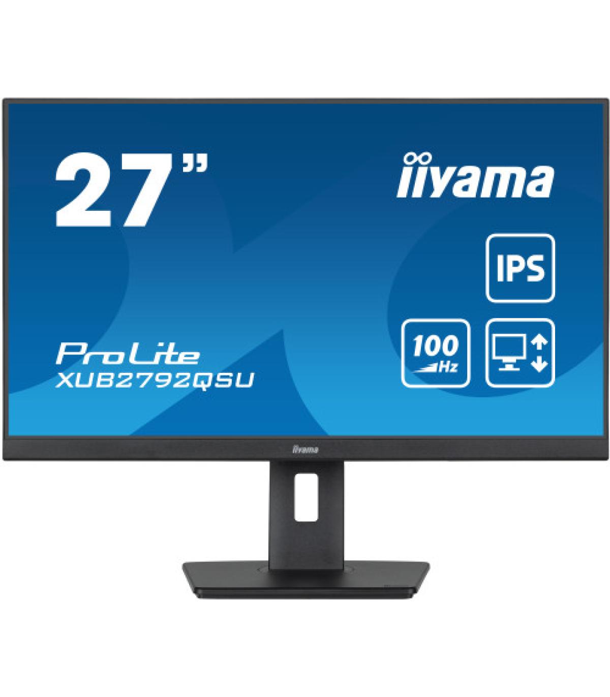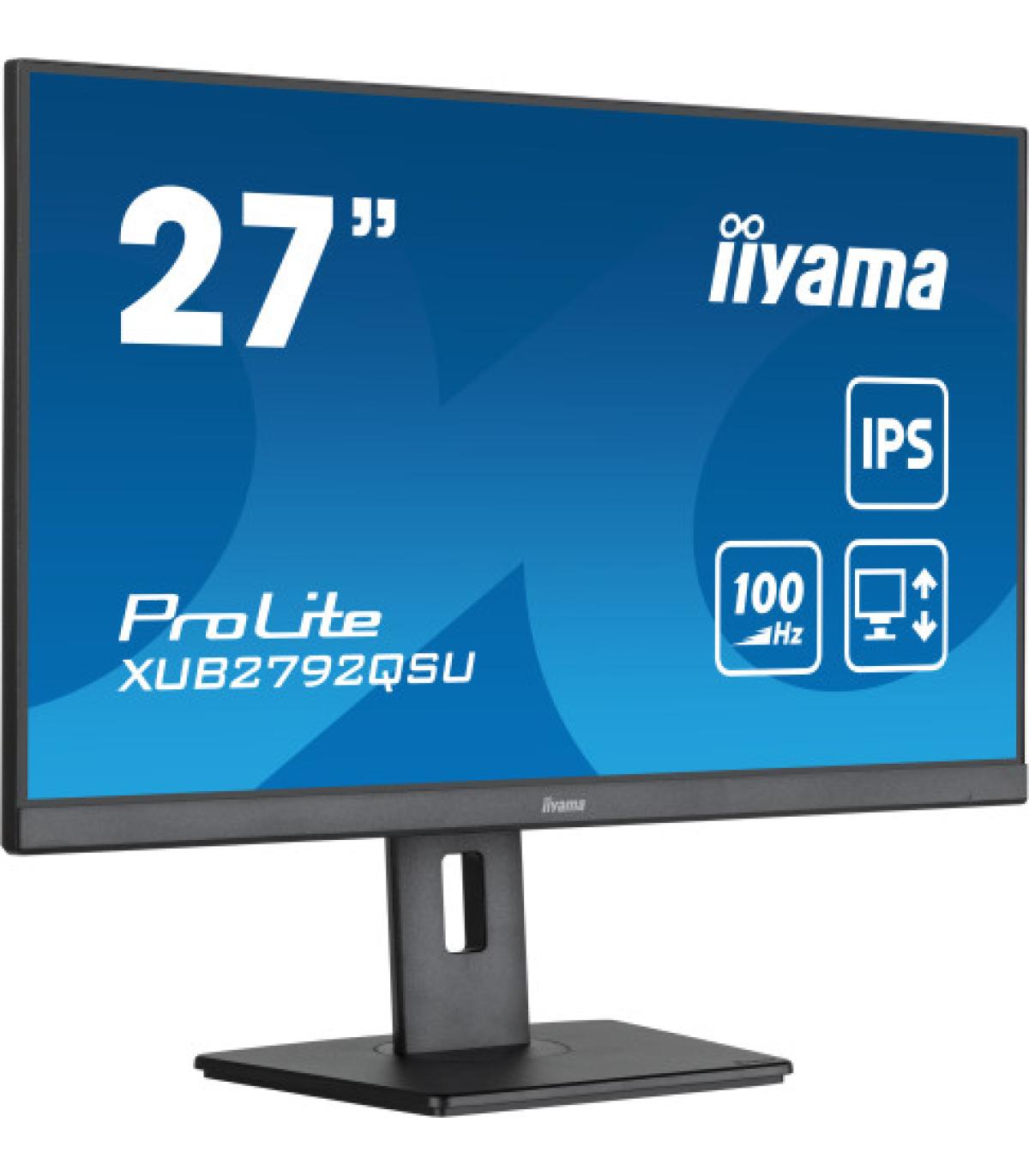 iiyama ProLite . Diagonal de la pantalla: 68,6 cm (27"), Resolución de la pantalla: 2560 x 1440 Pixeles, Tipo HD: Full HD, Tecnología de visualización: LED, Tiempo de respuesta: 0,4 ms, Relación de aspecto nativa: 16:9, Ángulo de visión, horizontal: 178°, Ángulo de visión, vertical: 178°. Altavoces incorporados. Conector USB incorporado, Versión de conector USB: 3.2 Gen 1 (3.1 Gen 1). montaje VESA, Ajustes de altura. Color del producto: Negro