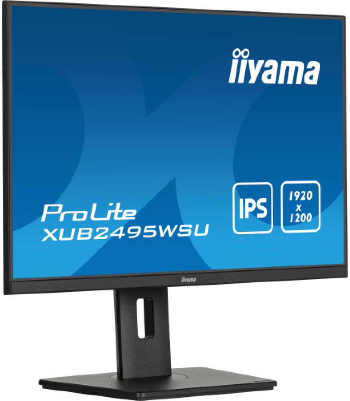 iiyama ProLite XUB2495WSU-B7. Diagonal de la pantalla: 61 cm (24"), Resolución de la pantalla: 1920 x 1200 Pixeles, Tipo HD: 4K Ultra HD, Tecnología de visualización: LED, Tiempo de respuesta: 4 ms, Relación de aspecto nativa: 16:10, Ángulo de visión, horizontal: 178°, Ángulo de visión, vertical: 178°. Altavoces incorporados. Conector USB incorporado, Versión de conector USB: 3.2 Gen 1 (3.1 Gen 1). montaje VESA, Ajustes de altura. Color del producto: Negro