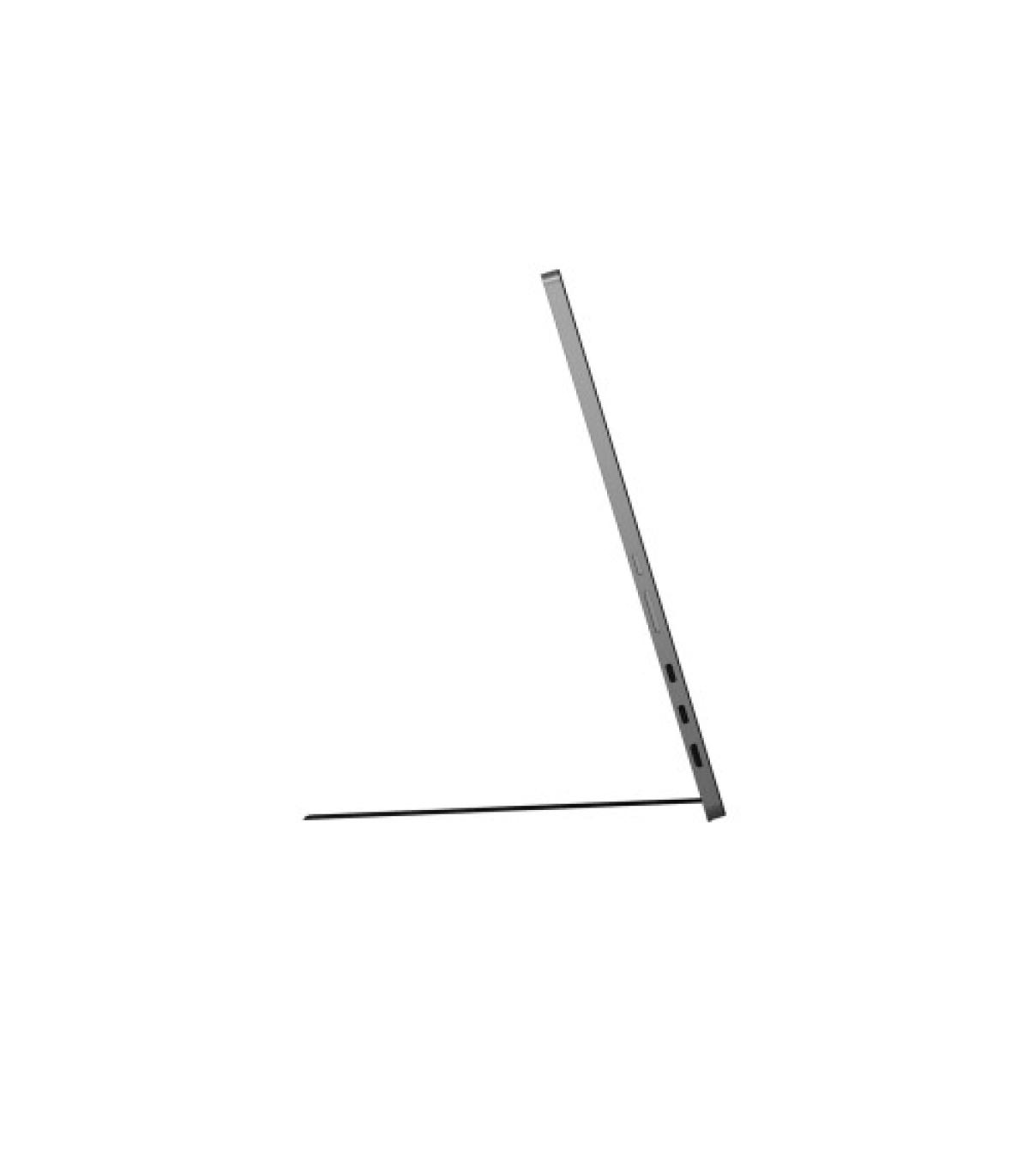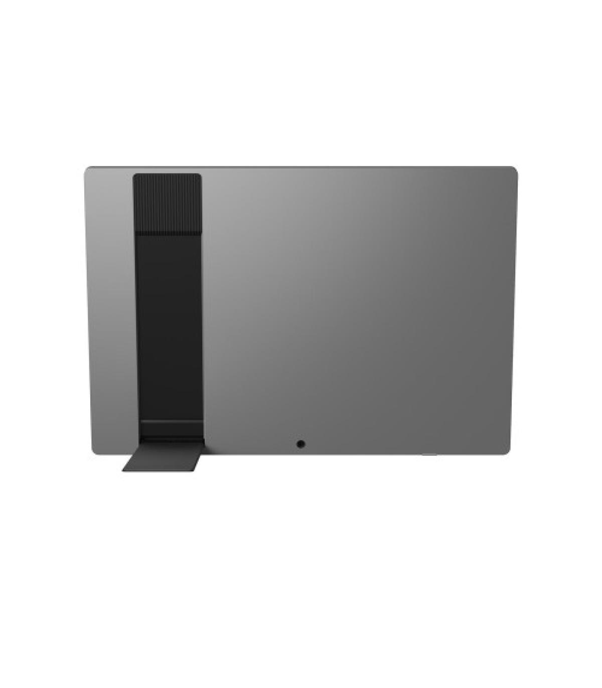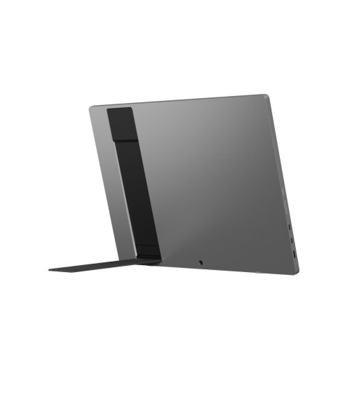El elegante color plata titanio de gram +view complementa cualquier espacio y armoniza a la perfección con el esbelto diseño de gram. Su soporte integrado, «Kickstand», se despliega fácilmente para una rápida instalación y uso en cualquier lugar, sin necesidad de herramientas adicionales.