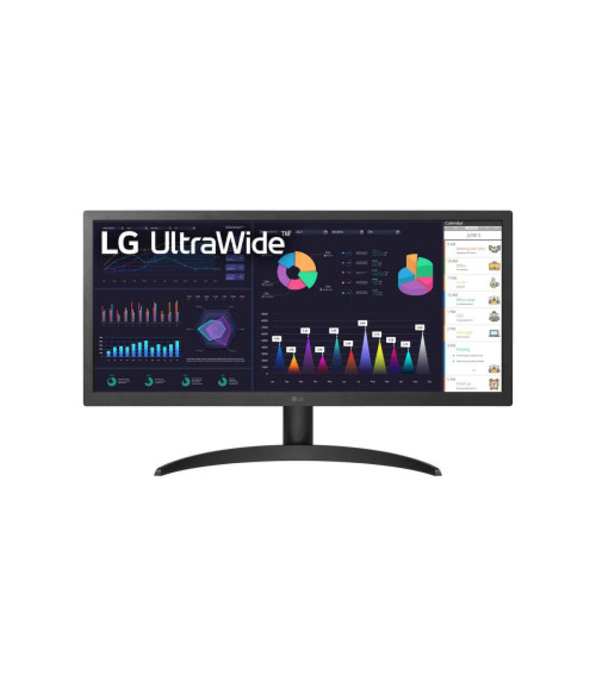 LG 26WQ500-B. Diagonal de la pantalla: 65,3 cm (25.7"), Resolución de la pantalla: 2560 x 1080 Pixeles, Tipo HD: 4K Ultra HD, Tecnología de visualización: LCD, Tiempo de respuesta: 5 ms, Relación de aspecto nativa: 21:9. Color del producto: Negro