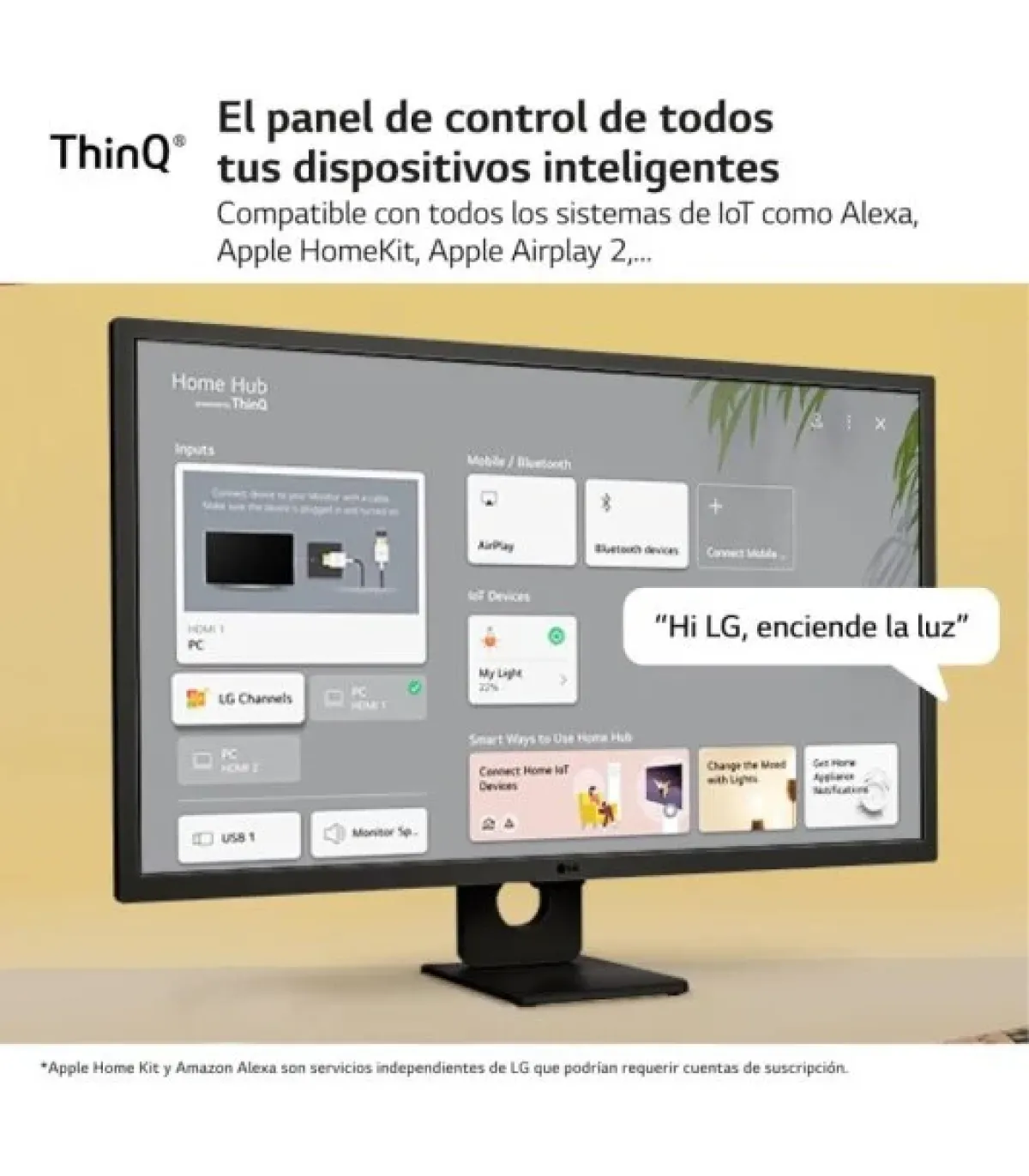 El Smart TV más fácil, intuitivo y seguro. Disfruta de tus contenidos* favoritos en streaming: LG Channels, Netflix, Rakuten, Prime Video, Disney+, Apple TV, YouTube, Twitch y otras apps integradas como música, videojuegos y deportesWebOS 23. Crea perfiles por usuario y disfruta de un contenido personalizado. Mando a distancia Magic Remote opcional.**El mando a distancia Magic Remote se vende por separado. Solo compatible con el modelo del mando MR23.Comparte contenido. Comparte fácilmente contenido o música desde tu dispositivo inteligente con AirPlay 2, Screen Share o Bluetooth.App ThinQ. Convierte tu casa en un hogar inteligente con ThinQ y Alexa. Compatible con Apple Home Kit, AirPlay 2HDR10. Colores más vivos y mejor contraste con HDR10. Panel IPS que permite colores constantes a 178º de ángulo de visión.