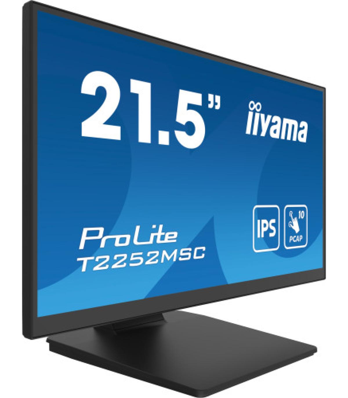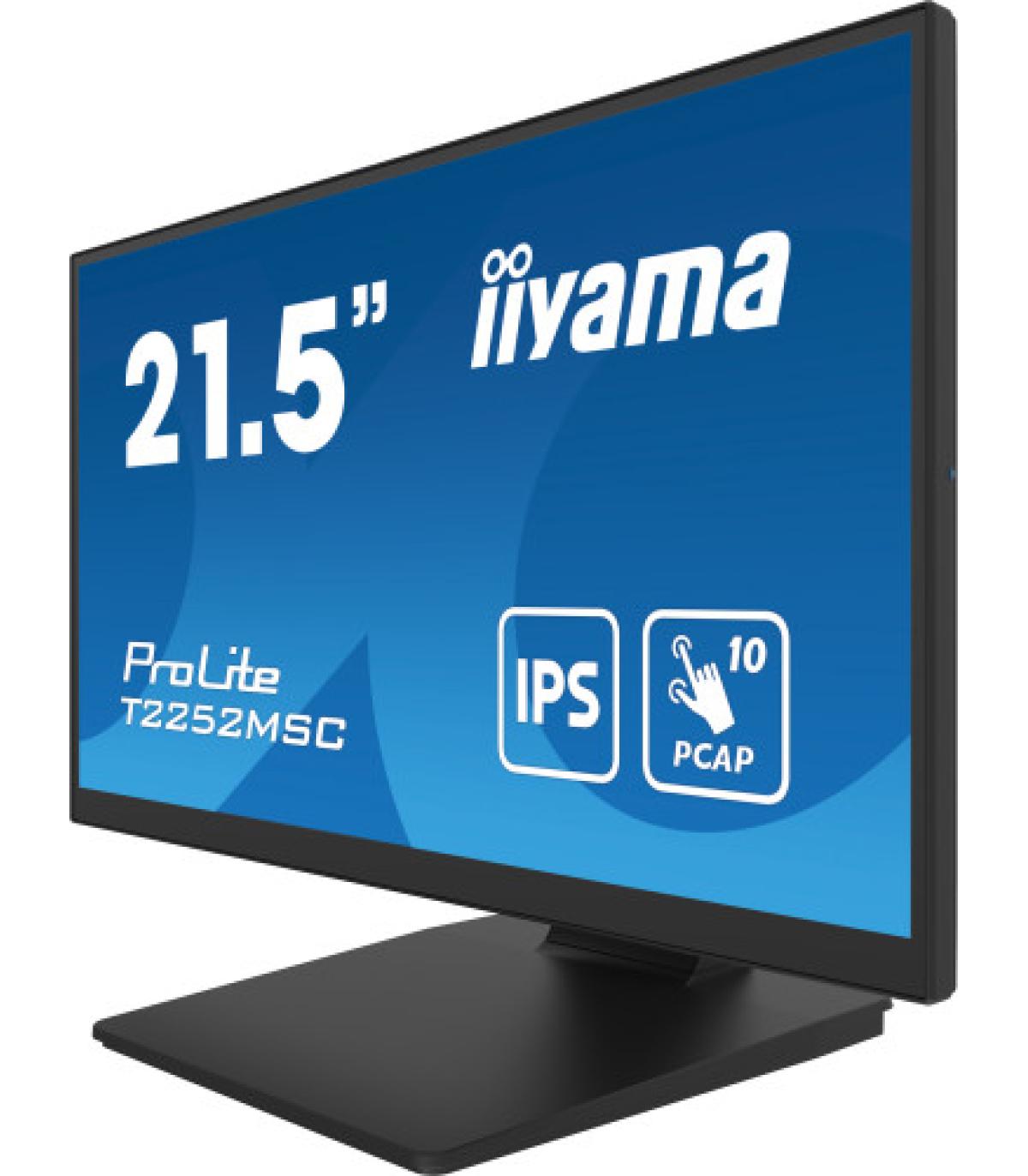iiyama ProLite T2252MSC-B2. Diagonal de la pantalla: 54,6 cm (21.5"), Resolución de la pantalla: 1920 x 1080 Pixeles, Tipo HD: Full HD, Tecnología de visualización: LCD, Tiempo de respuesta: 5 ms, Relación de aspecto nativa: 16:9, Ángulo de visión, horizontal: 178°, Ángulo de visión, vertical: 178°. Conector USB incorporado, Versión de conector USB: 2.0 / 3.2 Gen 1 (3.1 Gen 1). montaje VESA. Color del producto: Negro