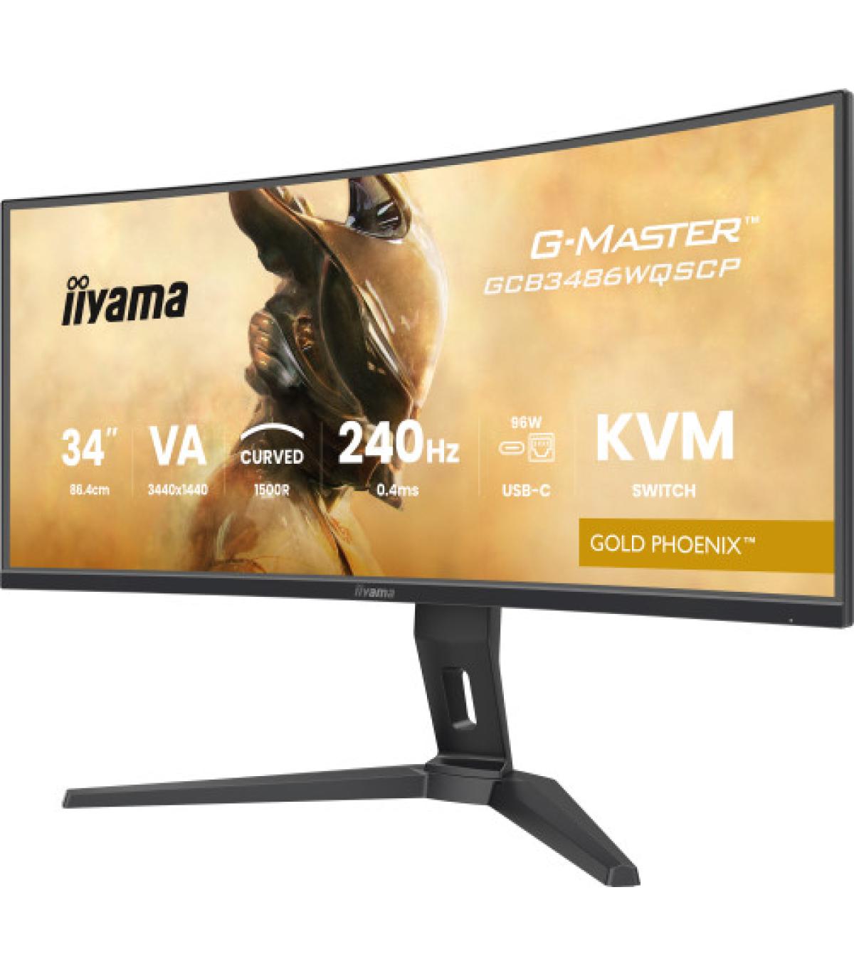 Llévate la delantera con el GCB3486WQSCP-B1 Gold Phoenix curvo, con una frecuencia de actualización de 240Hz, un tiempo de respuesta de 0.4ms y conmutador KVM incorporado