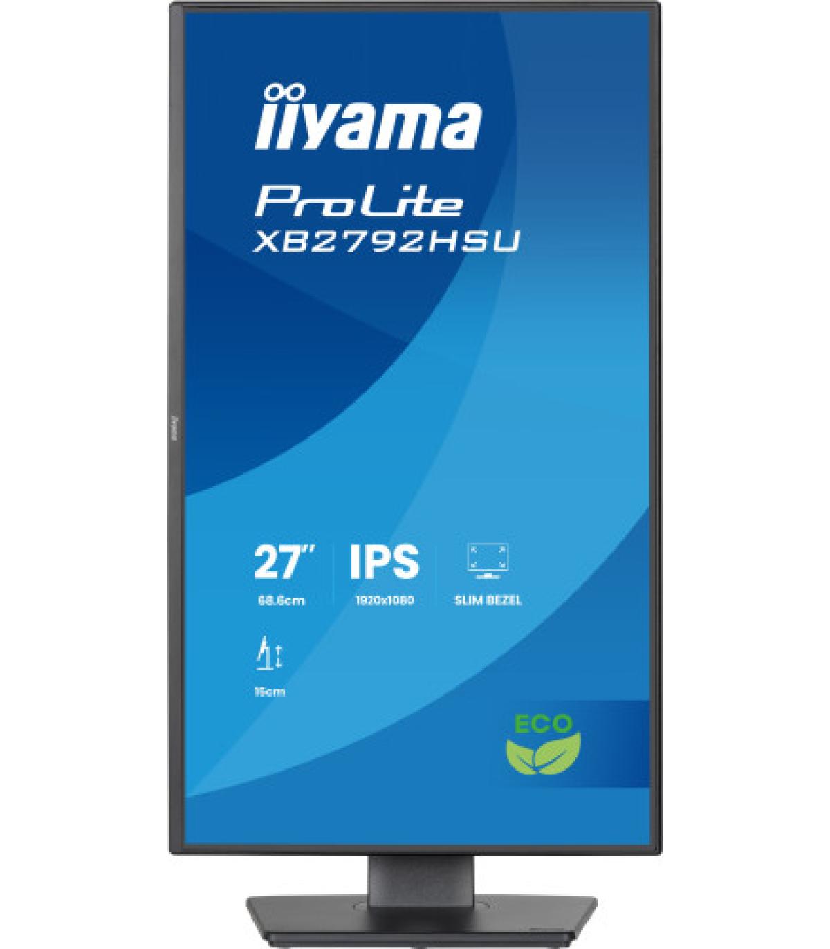 iiyama ProLite XB2792HSU-B1. Diagonal de la pantalla: 68,6 cm (27"), Resolución de la pantalla: 1080 x 1920 Pixeles, Tipo HD: Quad HD, Tecnología de visualización: LED, Superficie de la pantalla: Mate, Tiempo de respuesta: 3 ms, Relación de aspecto nativa: 16:9, Ángulo de visión, horizontal: 178°, Ángulo de visión, vertical: 178°. Altavoces incorporados. Conector USB incorporado, Versión de conector USB: 3.2 Gen 1 (3.1 Gen 1). montaje VESA, Ajustes de altura. Color del producto: Negro